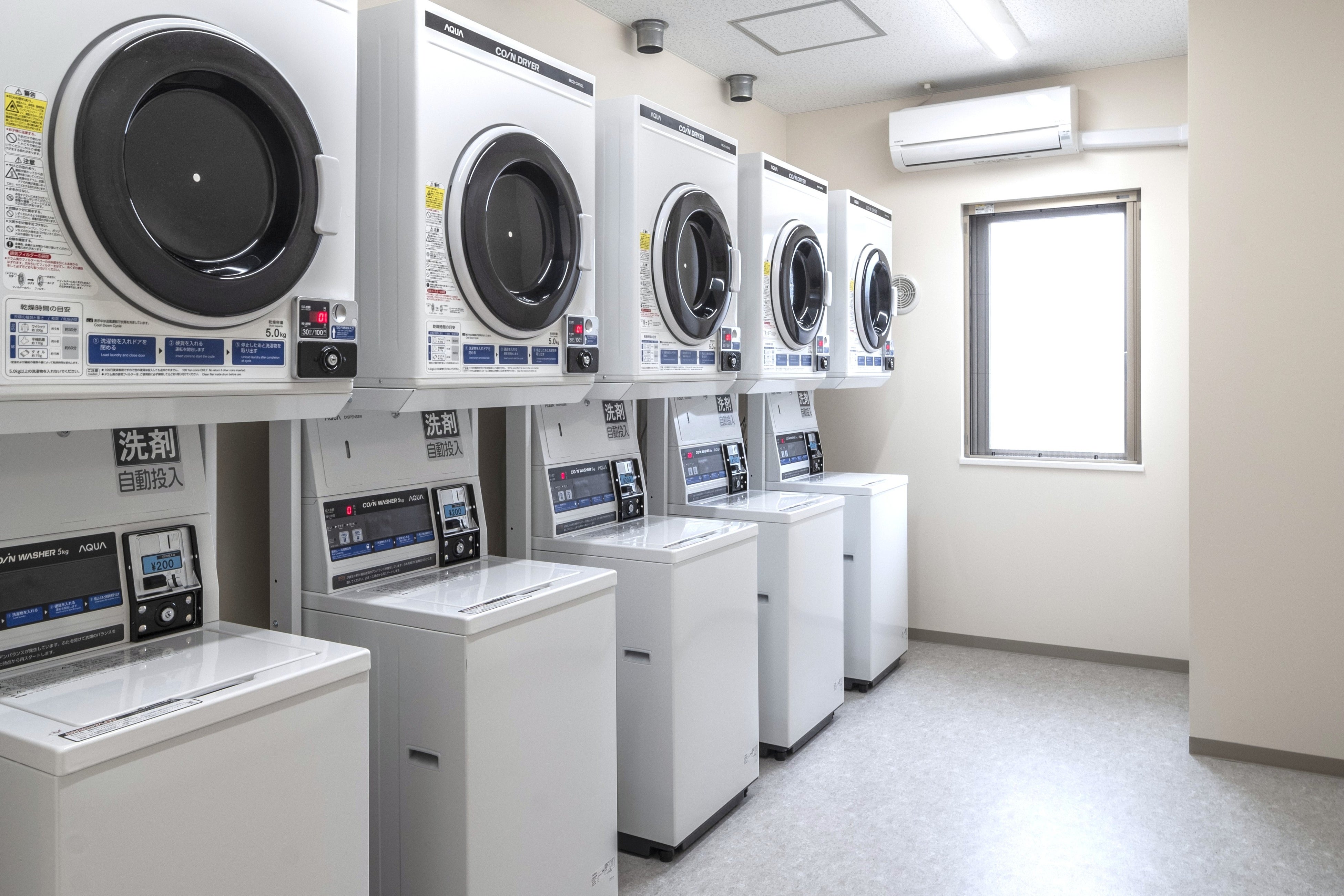 無料の平面駐車場を完備しているほか、全館で無料Wi-Fiを利用可能。館内にはコインランドリーや100円ショップも設置しており、日用品の調達や洗濯など、滞在中の「あると助かる」機能を一通り備えています。短期の宿泊だけでなく、連泊や長期滞在にも対応できる環境を整えています。