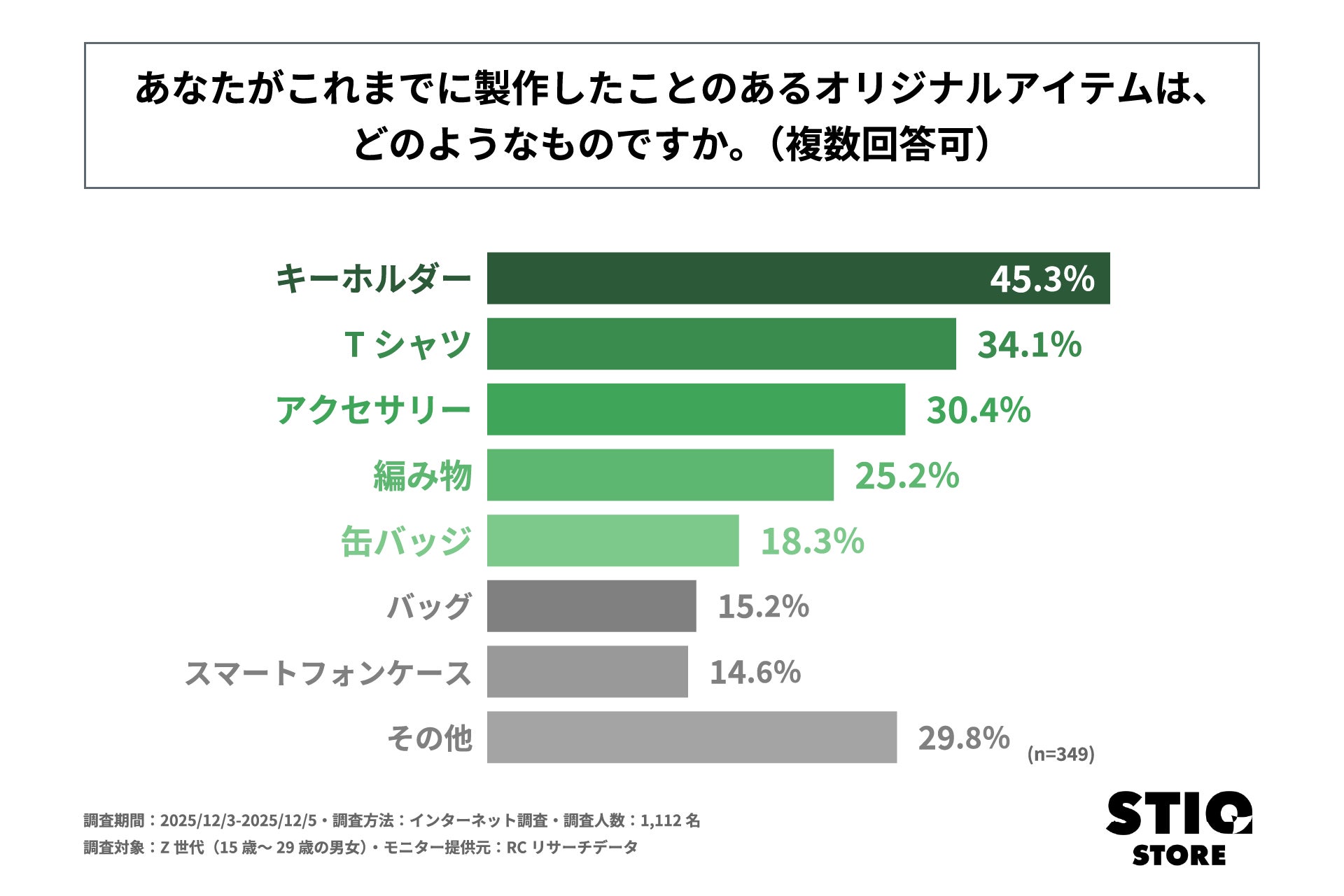 推し活やハンドメイドの人気拡大に伴い、Z世代におけるオリジナルアイテム製作の需要が高まっています。 しかし、実際にZ世代のうちどのくらいの人がオリジナルアイテムの製作経験があるのか、またその実態はどのようなものかはまだ十分に把握されていません。 そこで「STIQ STORE SHINSAIBASHI」は、Z世代を対象に「Z世代におけるオリジナルアイテム製作に関する調査」を実施しました。