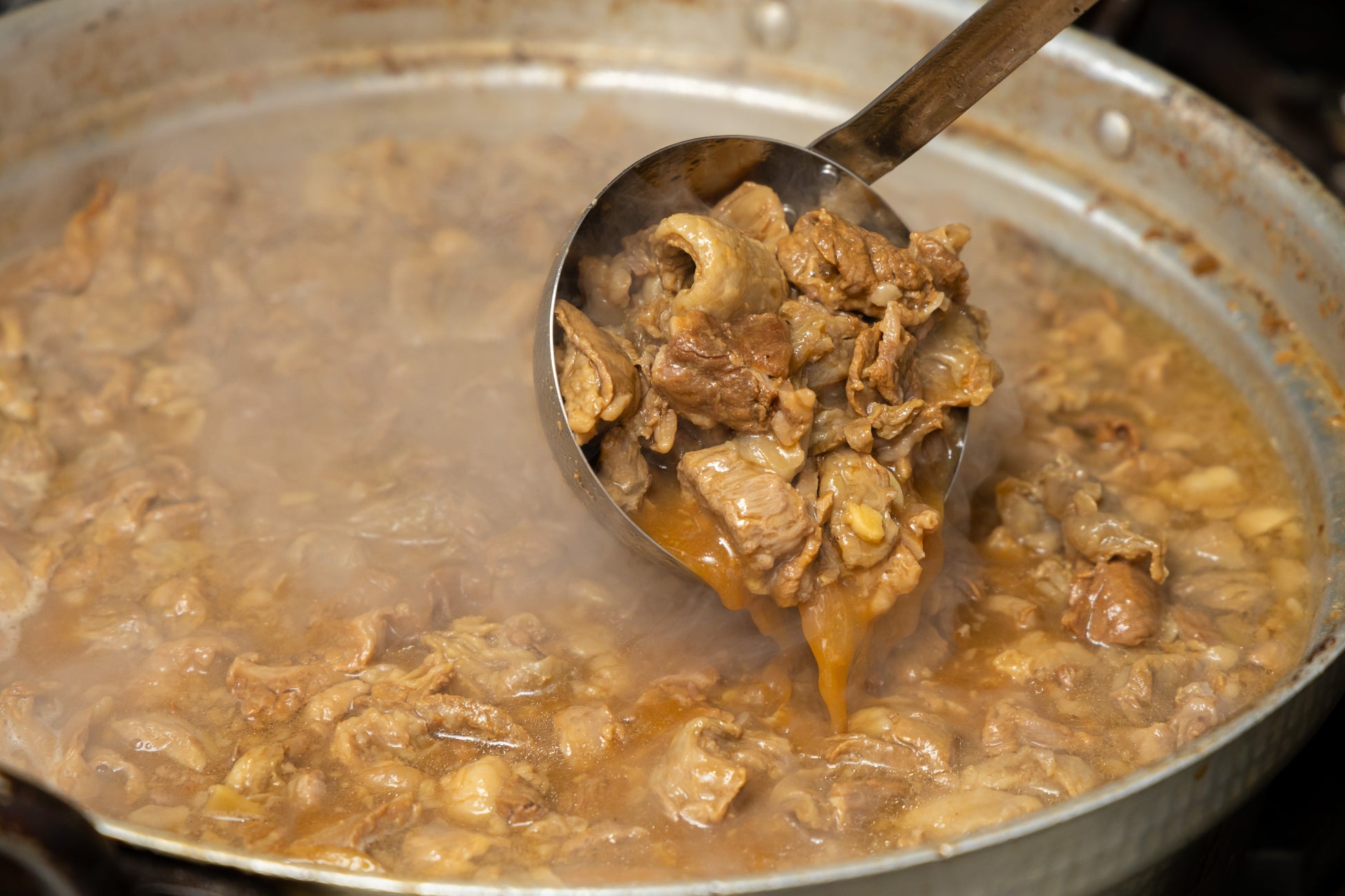 最後にもう一品ご紹介します。"5時間煮込んだ肉どうふ"は、大鍋で5時間じっくり煮込んだ牛すじ肉豆腐で、口に入れただけでとろけてしまいます。
