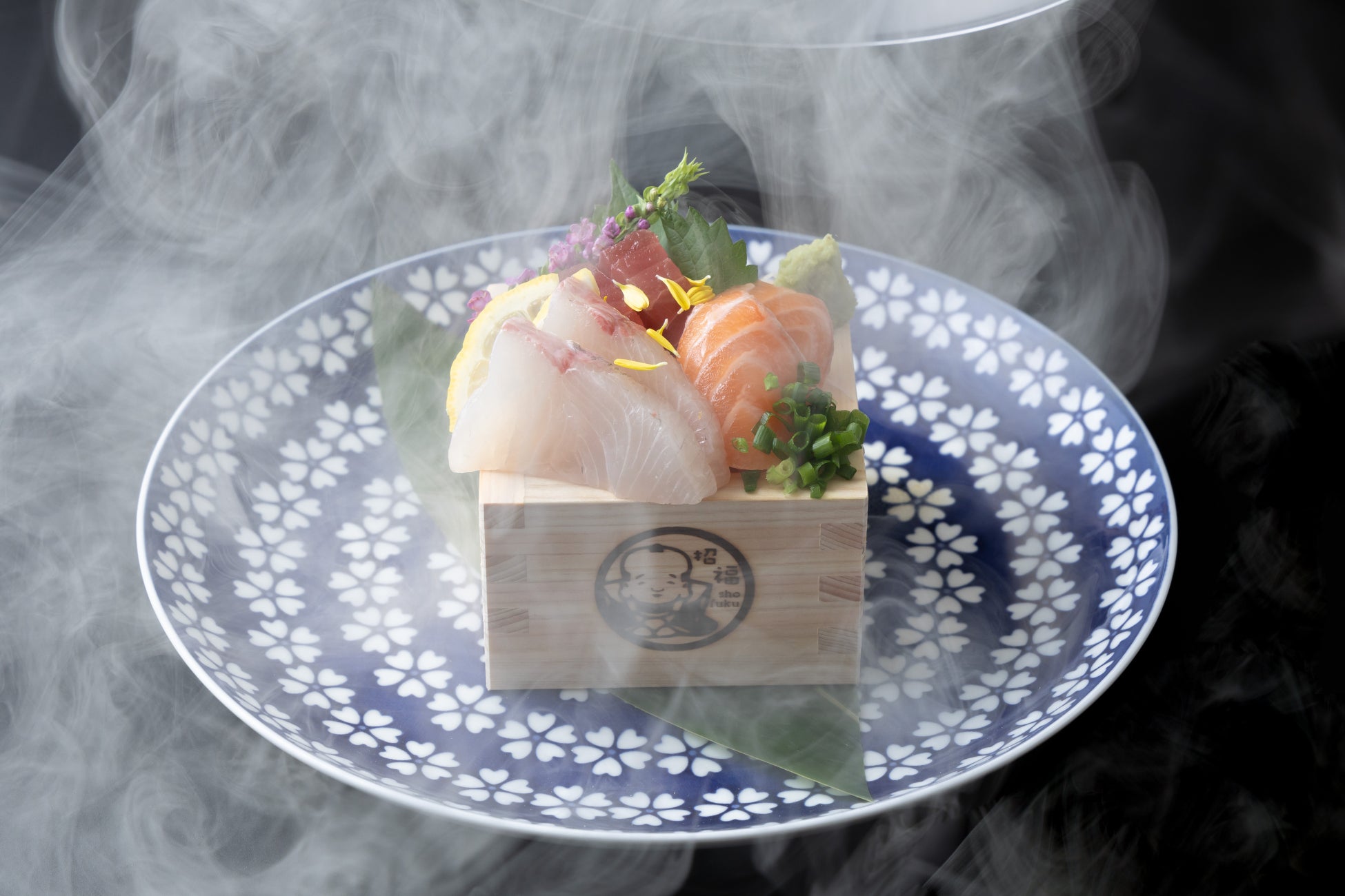 痛風鍋のほか、当店のおすすめ商品として"ほのか名物 鮮魚の升盛り ~煙~"は升に可愛く盛られた一品で、煙に隠れて登場します。燻製の香りは新鮮なお刺身をより美味しく引き立てます。