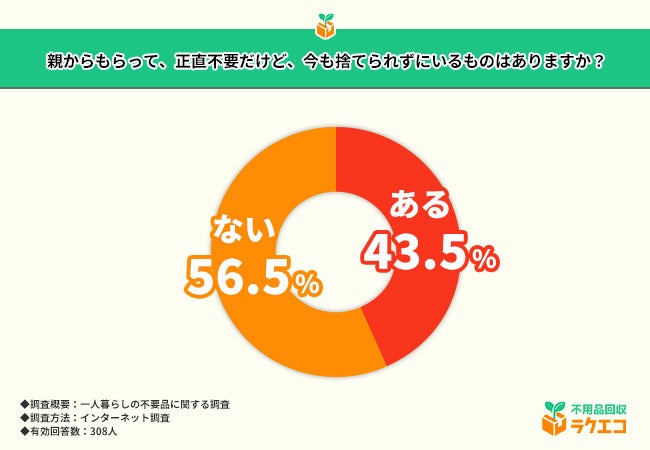・親からもらって捨てられずにいる物が「ある」と回答した人は43.5%