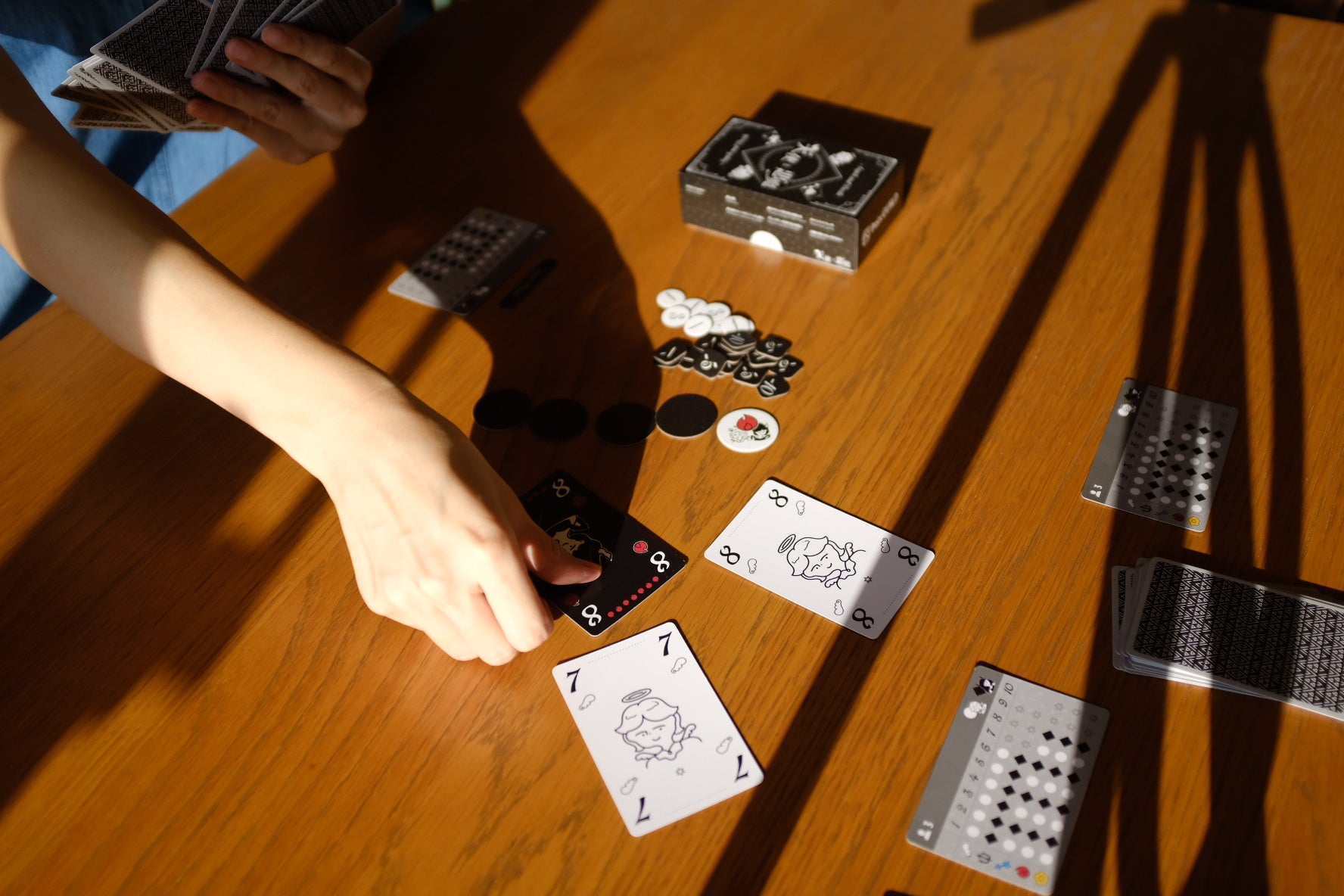 「天使と悪魔」は、1人1枚ずつカードを出しあって強さを比べるミニゲームを繰り返す、「トリックテイキング」カードゲームです。ルールはとってもシンプル。「悪魔カード」を相手に押し付けて、自分のライフを守り抜くだけ! タイミング良く「天使カード」を集められれば、ライフが回復することも。あなたは天使を味方につけられるか?