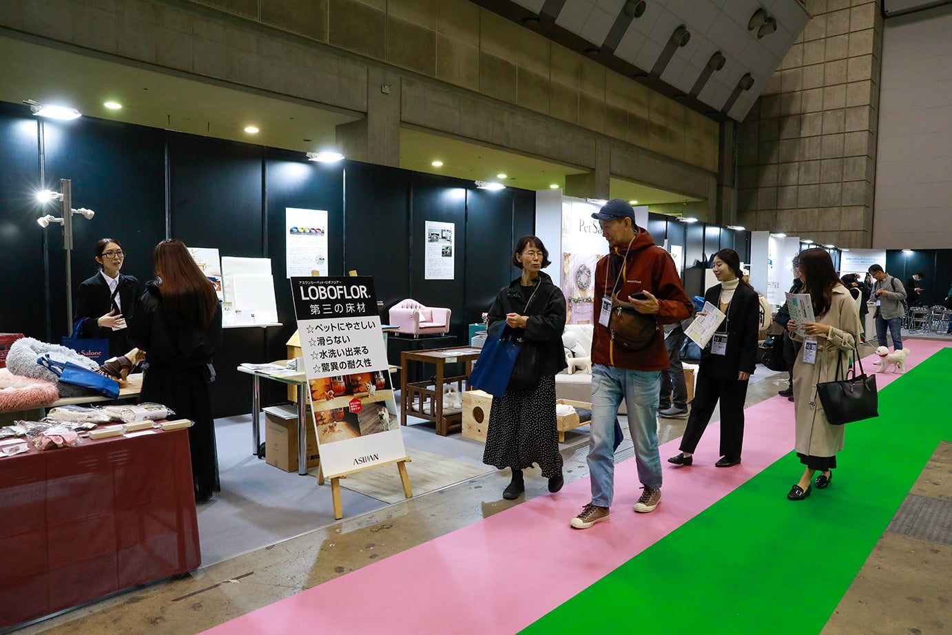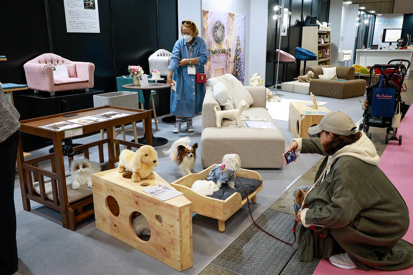 出展アイテムは、ペットと暮らす人のためのソファ・ペット対応床材・ペット専用ソファ・ペット専用介護マット・ペット用フェンス・キャットタワー・ペット用ドライヤー・猫用爪とぎ・ペット対応空気清浄機・生活小物など多岐にわたり、