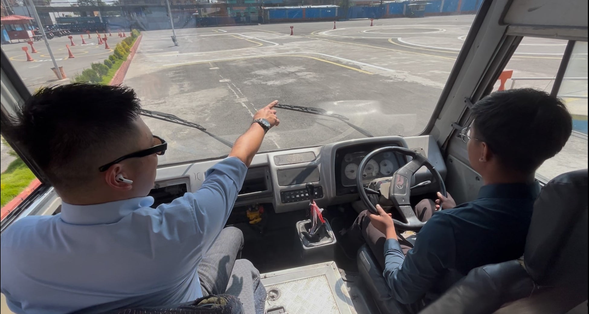 運転試験はネパールの教習所にて実施。車両はマイクロバスを使用。