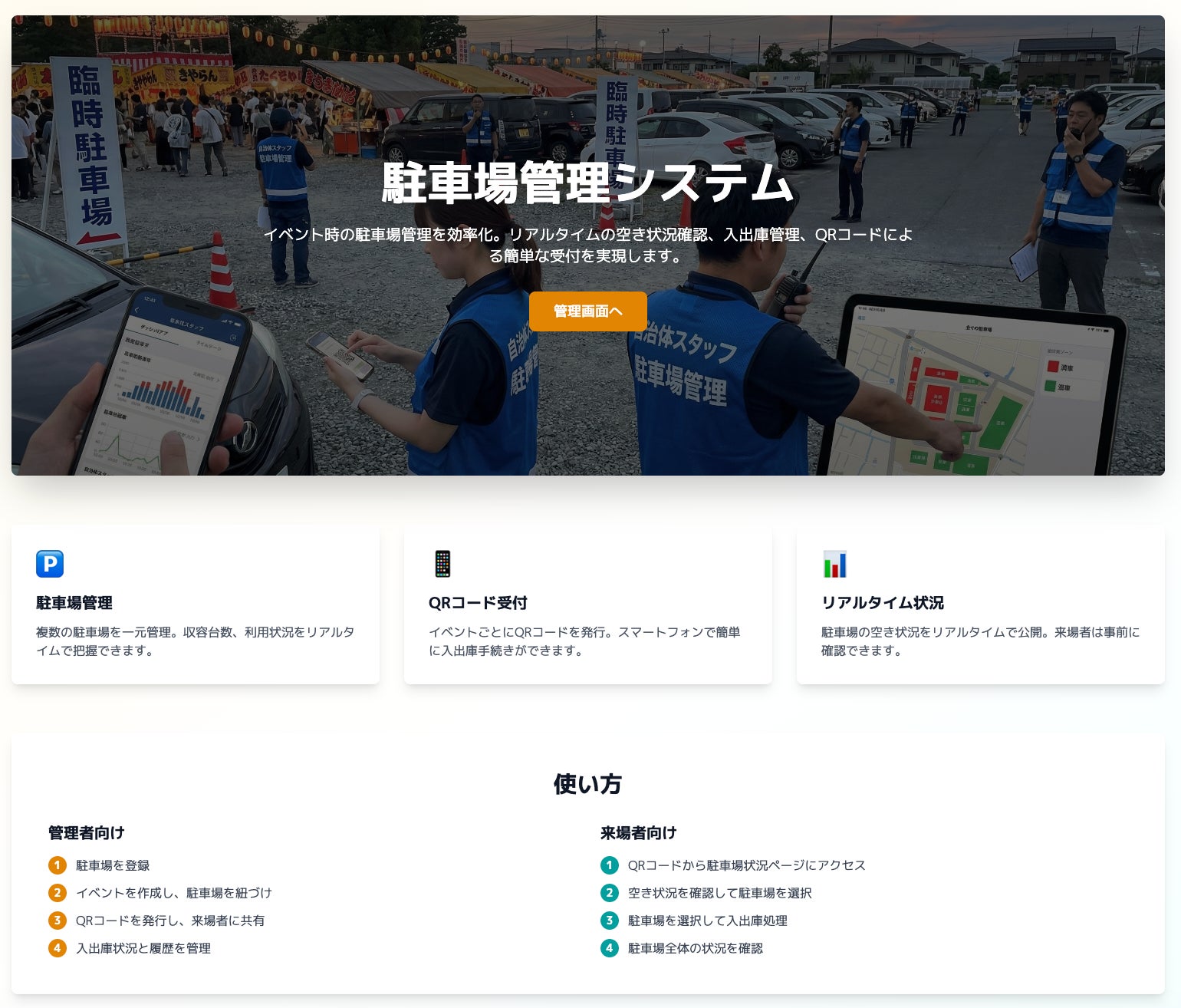 駐車場管理システム - イベント時の駐車場運営をスマートに