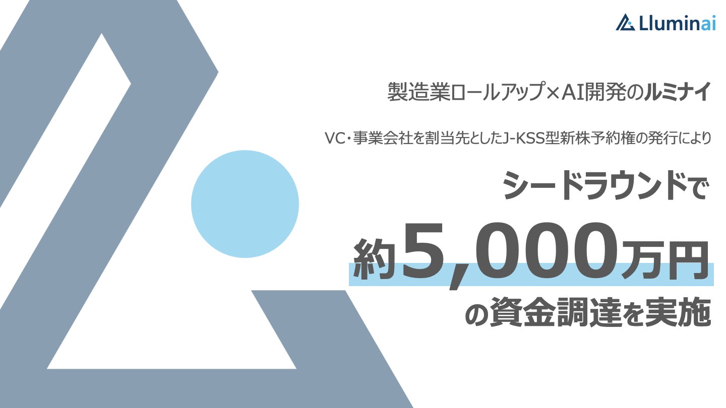 ルミナイ株式会社(本社:東京都港区、代表取締役 伊藤大地、以下「ルミナイ」)は、国内ベンチャーキャピタルや事業会社を割当先とするJ-KISS型新株予約権の発行により、5,000万円超の資金調達を実施したことをお知らせいたします。今回の調達により、中小製造企業を連続的にM&Aしバリューアップしていくロールアップ戦略の推進体制を強化してまいります。