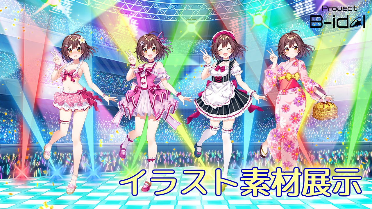 「一から楽曲やイラスト、映像を作るのはハードルが高い」——そんな方のために、Project B-idolではキャラクターの立ち絵やカラオケデータなどを自由に使える公式素材として配布しています。これらは非商用であれば二次創作に自由にご活用いただけます。