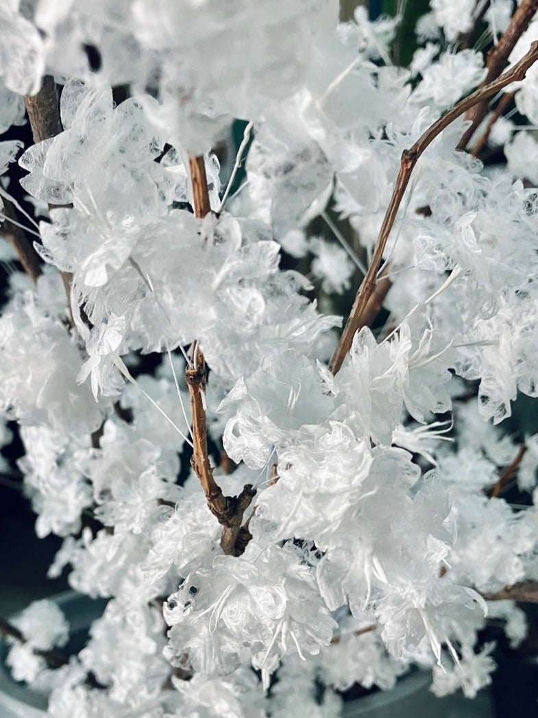 造花やディスプレイ業界では一般的だったプラスチックパーツを全廃しました。開発初期の「千鳥」を経て、近年のラグジュアリーホテルでの展示で実証された「完全自然素材」の技術を、本モデルで標準仕様として確立。花弁はもちろん、枝、幹、固定材に至るまで全てが自然由来の素材で構成されています。役目を終えた後は土に還り、地球環境に負荷をかけない、真のサステナブル・アートです。