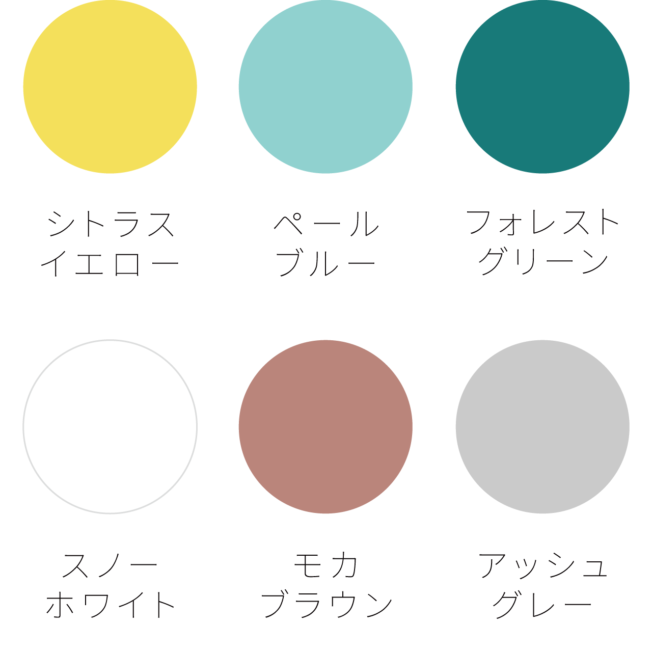 (シトラスイエロー/ペールブルー/フォレストグリーン/スノーホワイト/モカブラウン/アッシュグレー)