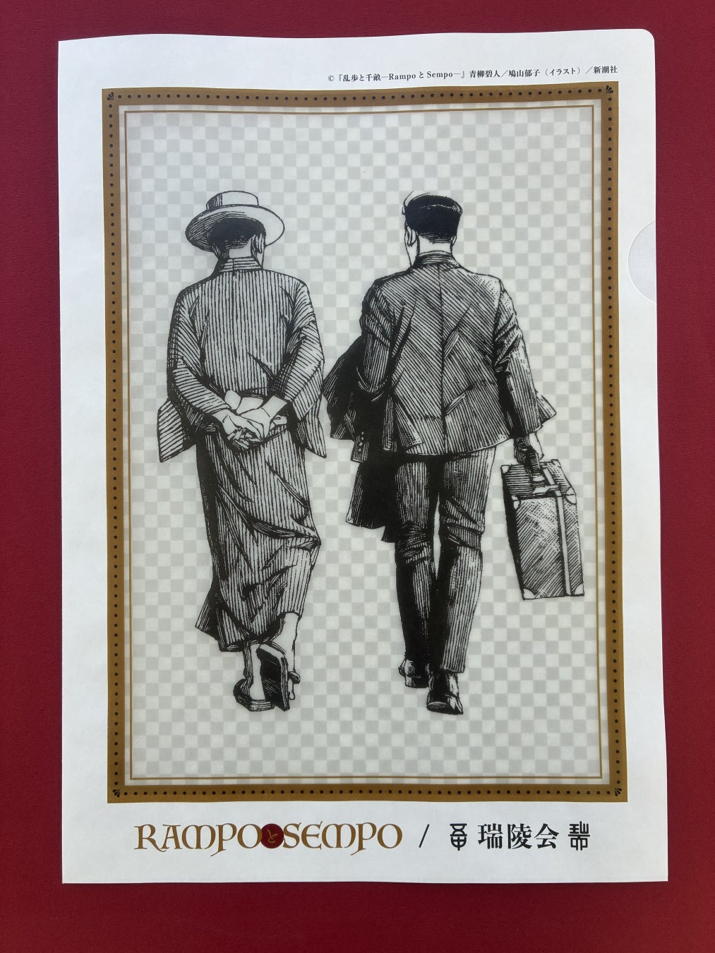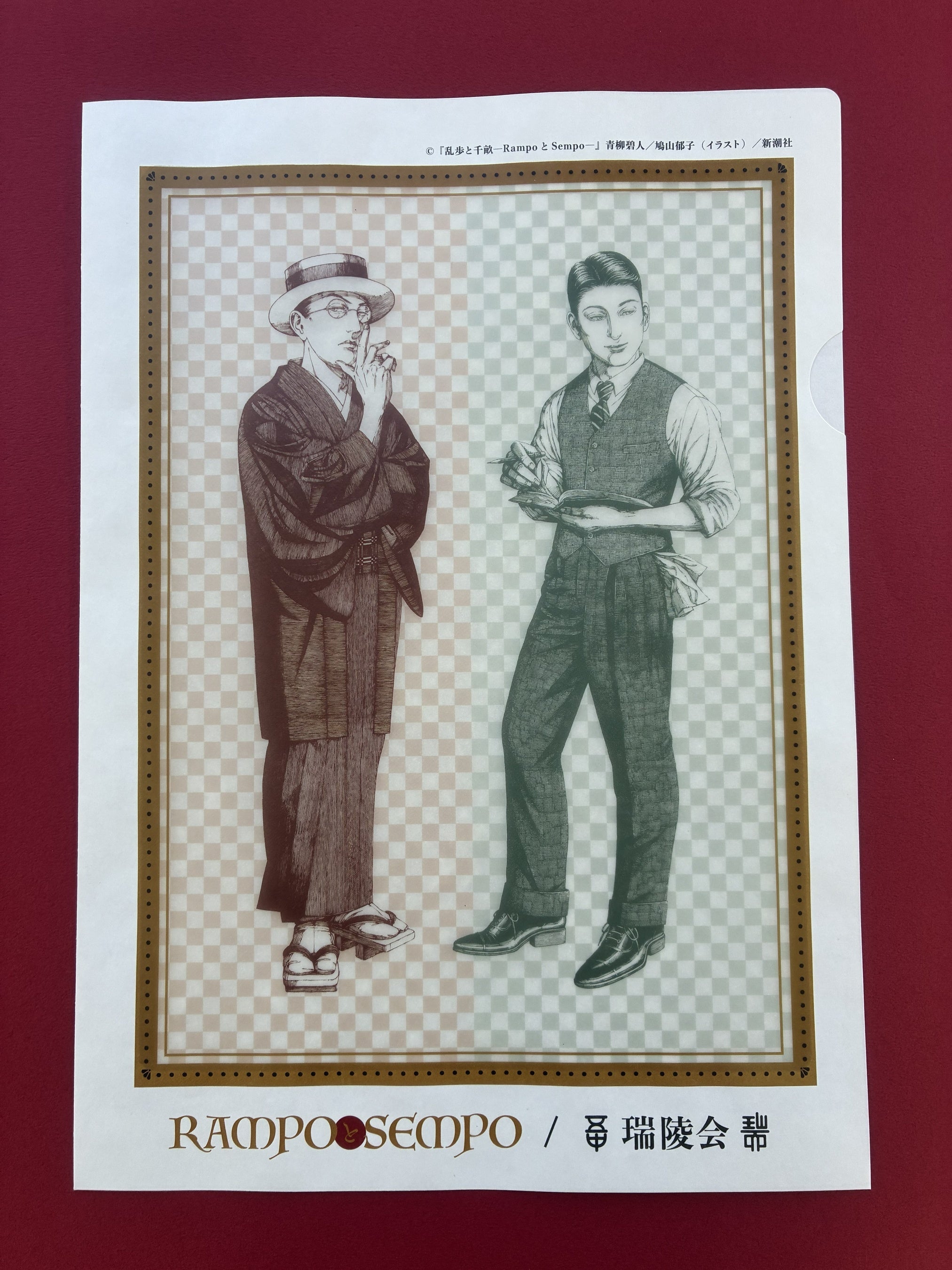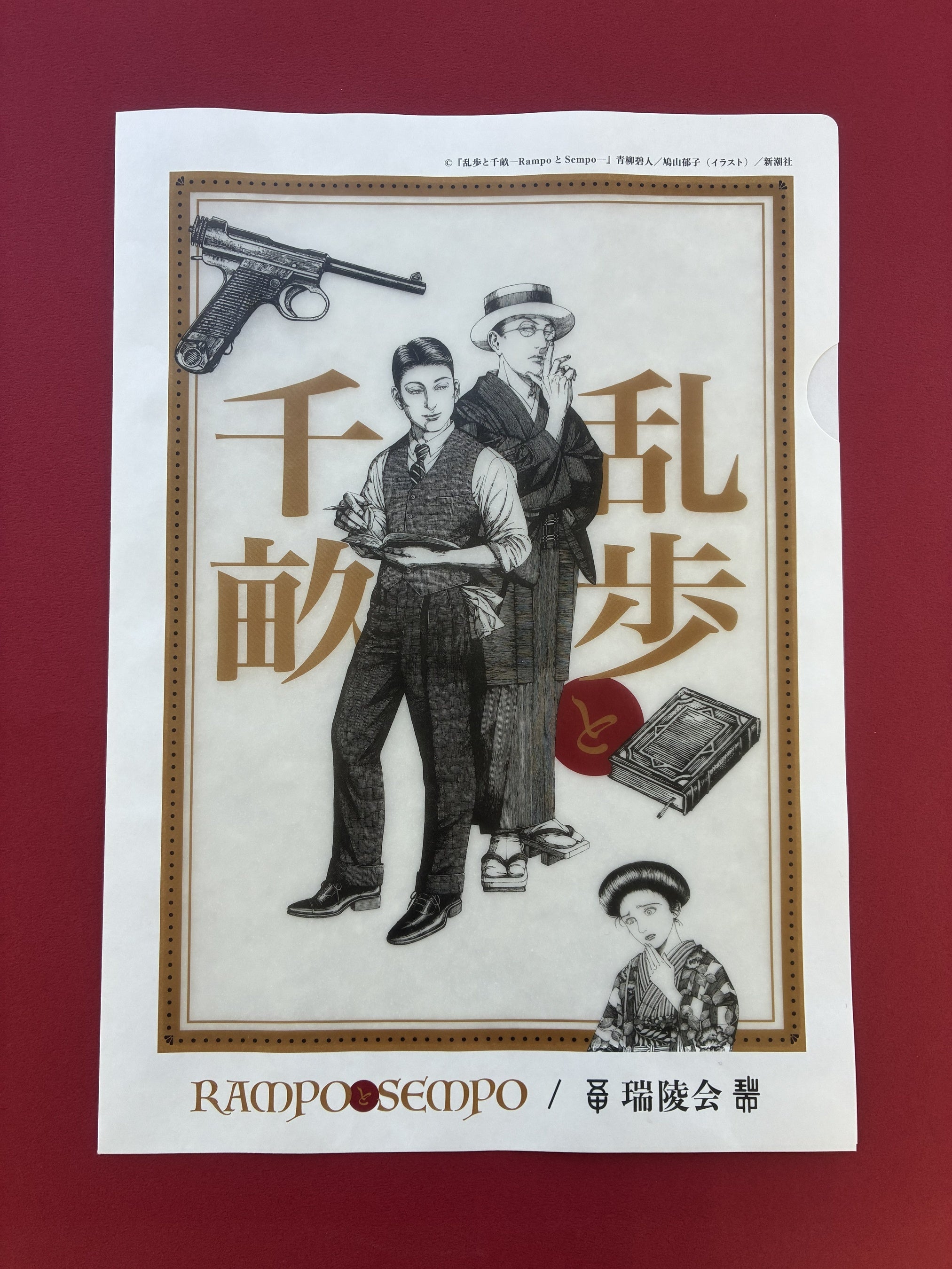 激動の昭和初期に交錯する江戸川乱歩と杉原千畝の二人の運命を描き、直木賞候補となった人気小説『乱歩と千畝─RAMPOとSEMPO─』(作:青柳碧人/画:鳩山郁子/新潮社)。小説の魅力を一層引き立てる鳩山郁子氏の装画を忠実に再現した紙ファイルが完成いたしました。