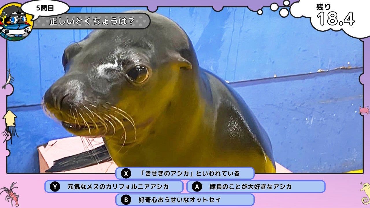本作は、生き物への新しい発見や感動を楽しめる「見れる! 知れる! 遊べる!」新感覚の知育ゲームです。ゲームを通して「生き物」たちに少しでも興味をもってもらい、水族館に足を運んでもらえればと思っております。