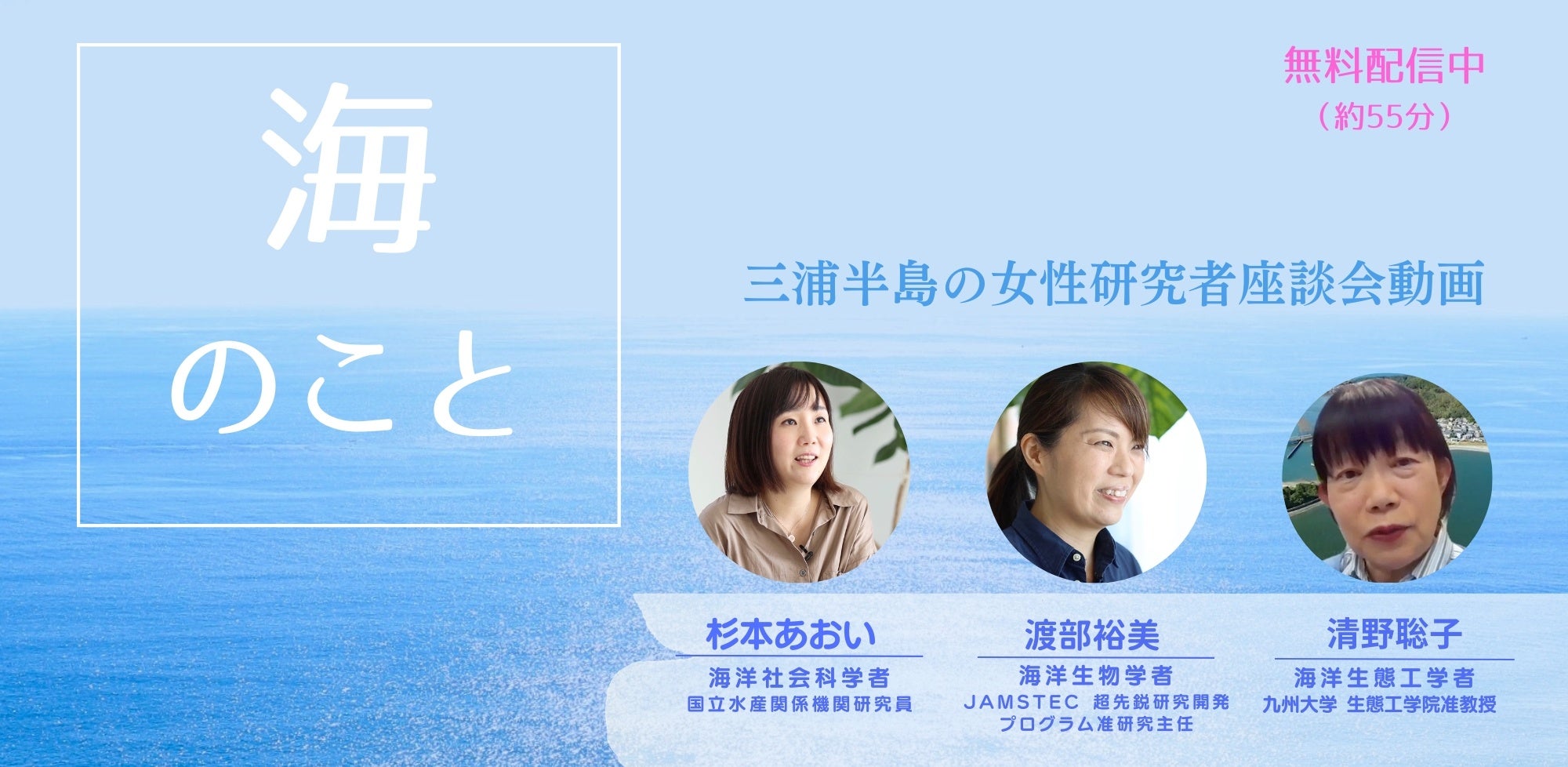 三浦半島出身・在住の女性の海の研究者3名が「人と海の関係」「深海の世界」「沿岸政策」「研究の世界におけるジェンダー問題」など「海」をテーマに多角的な視点で、わかりやすく、おもしろく、時には辛辣に語る座談会動画。