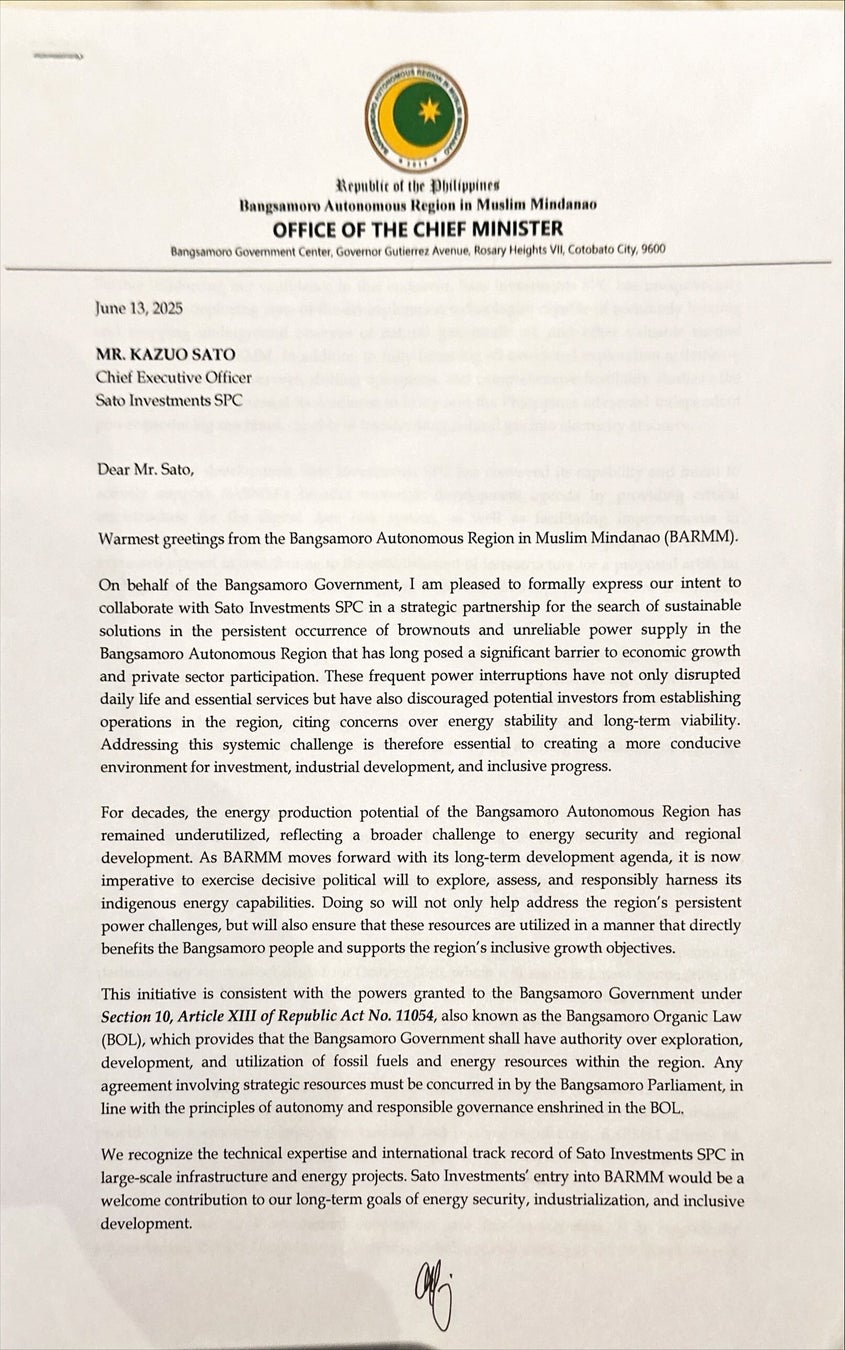 IPP・天然ガス・石油開発に関するコンサルティング業務の意向をフィリピン バンサモロ自治政府より受託