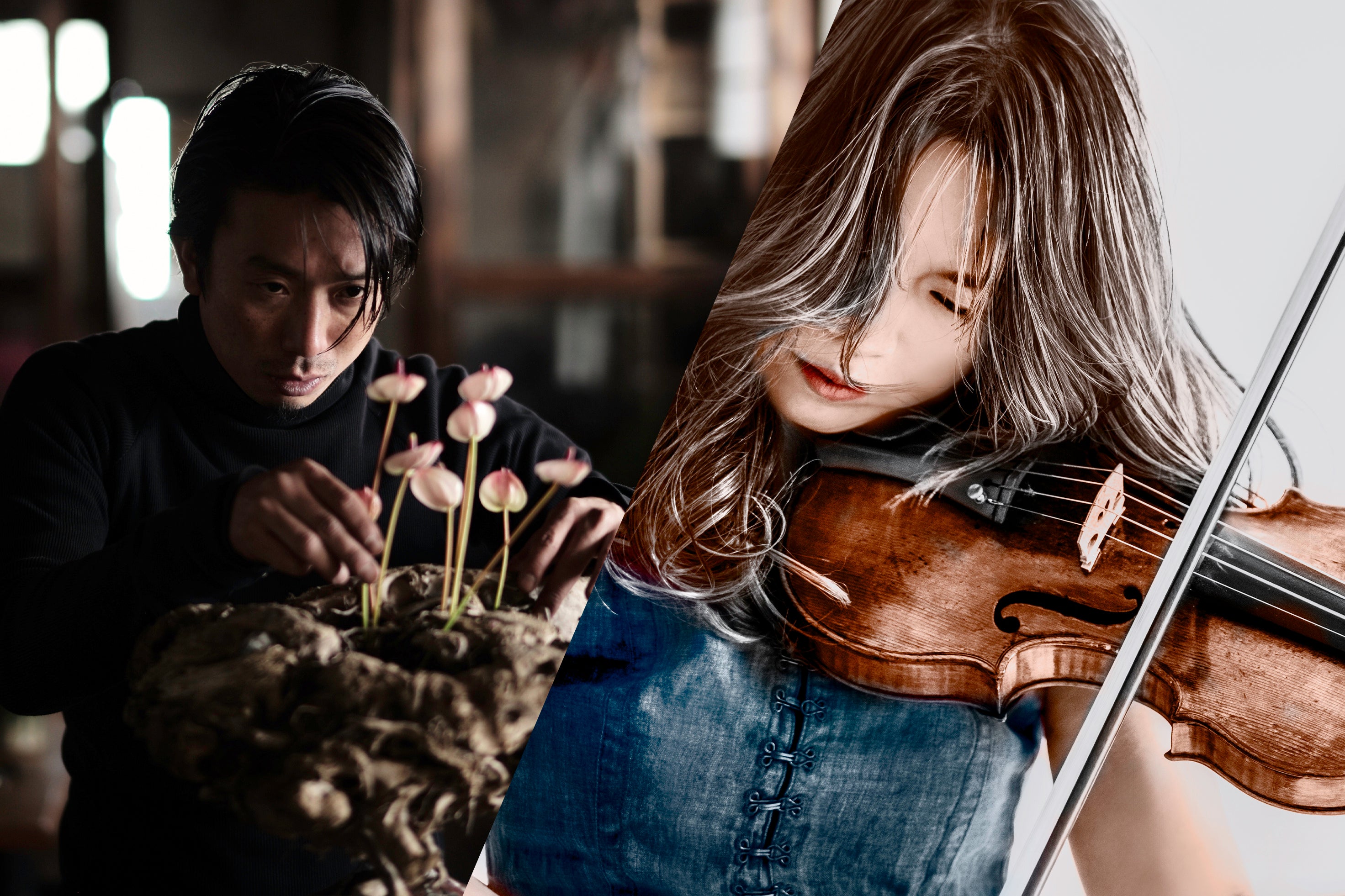 華道家の萩原亮大とヴァイオリニストの滝千春による斬新で刺激的なコラボレーションをお届けします。万華鏡のように、花生けと音楽が互いに響き合い、観客に新しい感動を与えます。