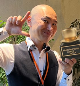 新田珈琲(福井県敦賀市)の店主。JHDC(ハンドドリップ競技大会)史上初の2023年・2024年連続優勝を達成。2025年度は日本代表として台湾の国際大会に出場し、ドリップ部門1位にも輝く。