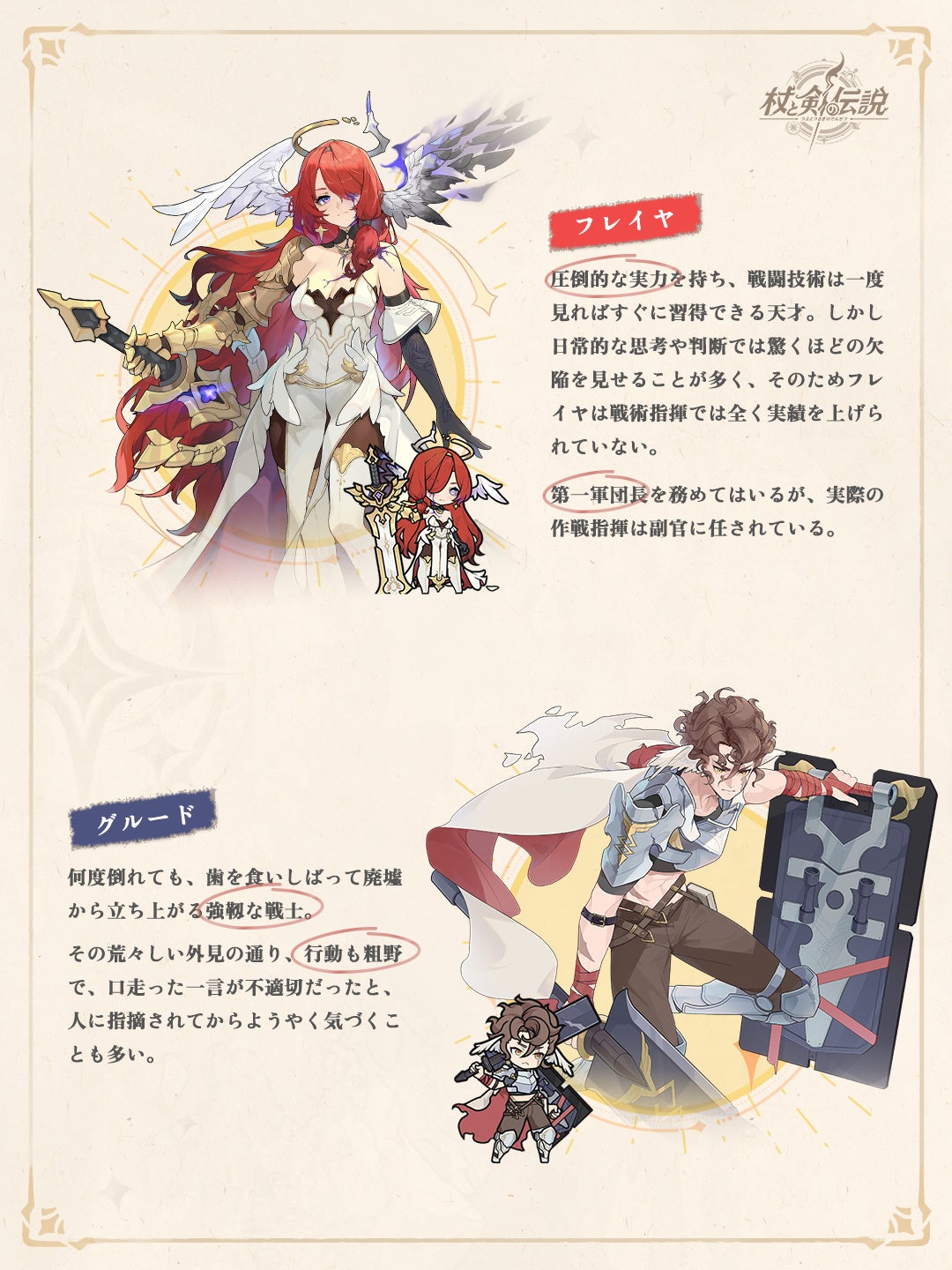 授かった力で混沌の魔物と戦い、幾多の試練を乗り越えてきた第1軍団の軍団長。混沌の君主の一撃を受け止められるのは、ただフレイヤのみ。