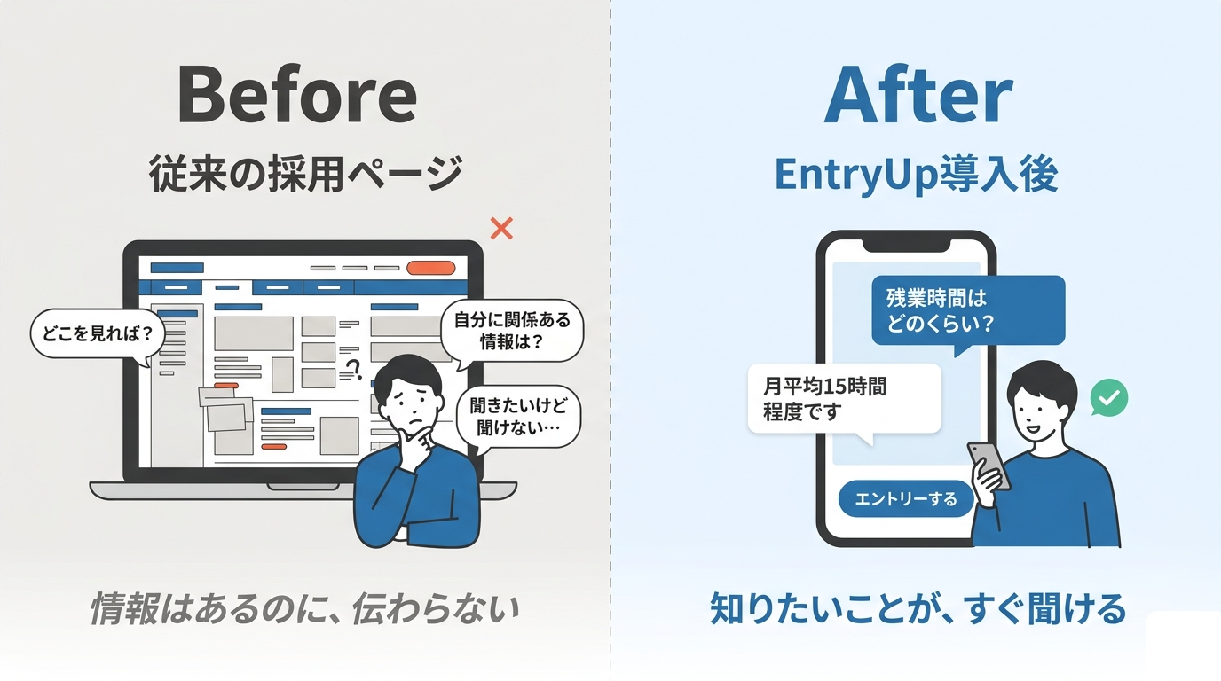 採用ページに足りないのは情報じゃない、"届け方"だ —— AIチャットボット「EntryUp」が候補者との対話で応募率を変える