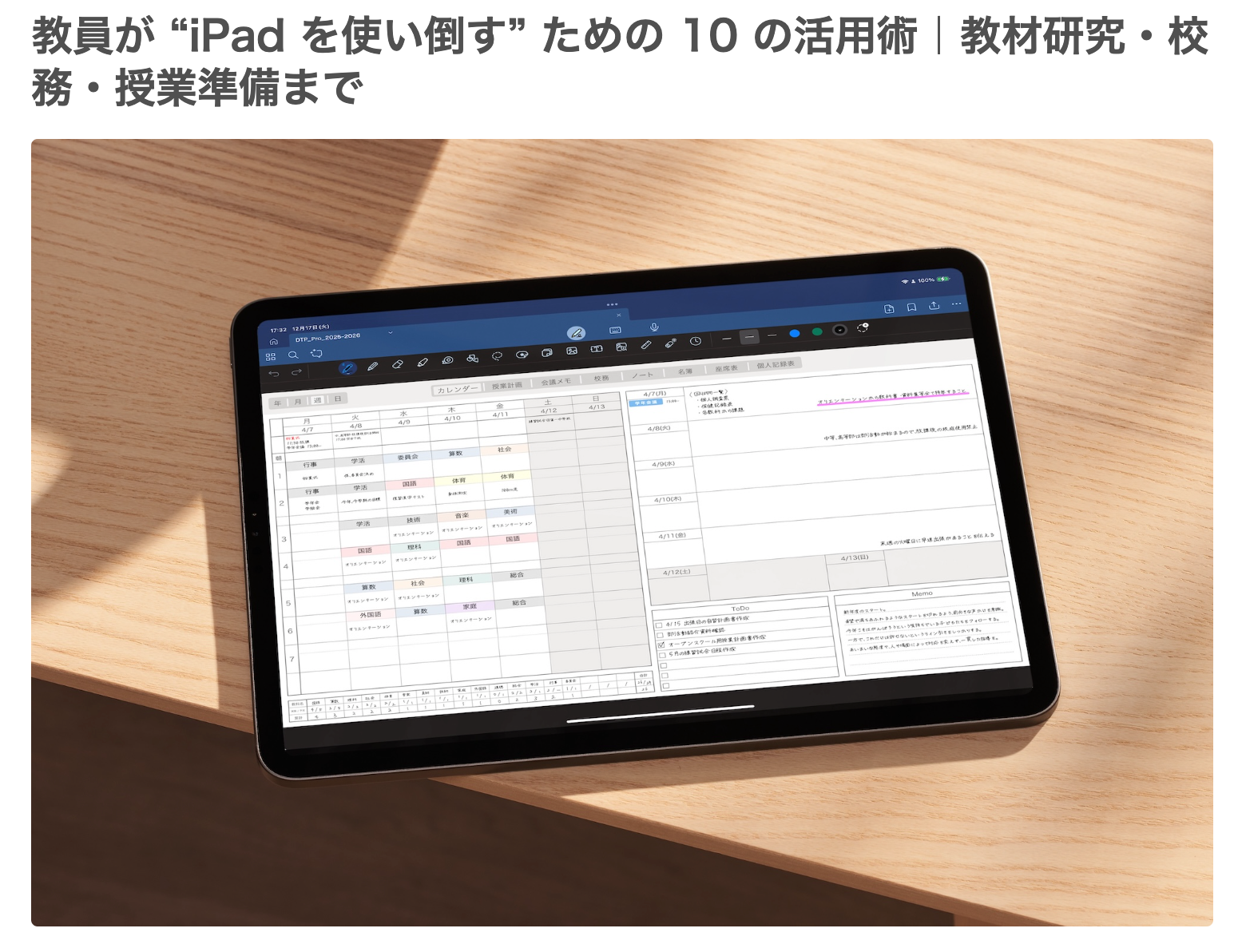 週間・日別スケジュール、授業計画、生徒名簿などを網羅し、iPad1台で教員に必要な情報をまとめることができます。