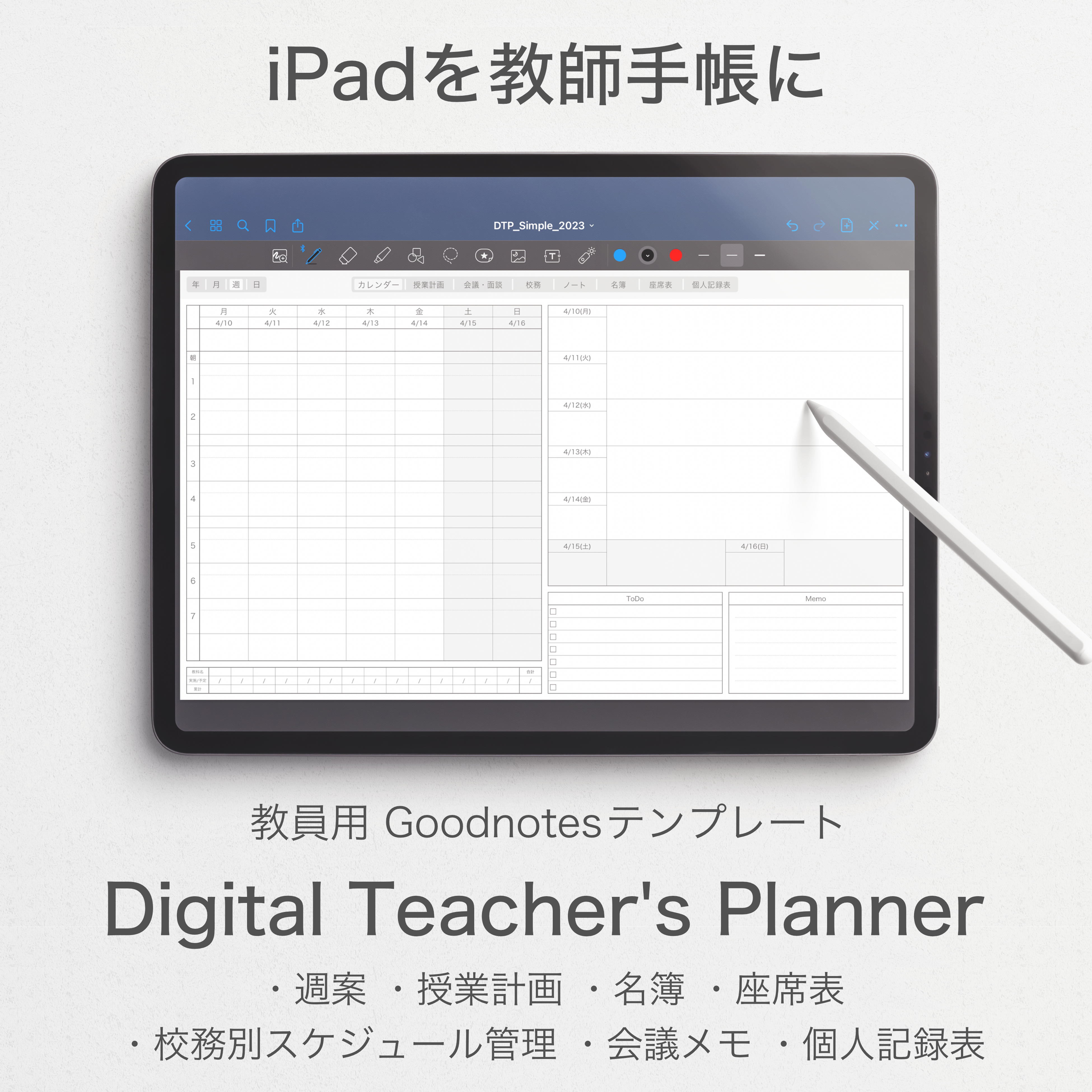 【Goodnotes対応 教師手帳テンプレート「デジタルティーチャーズプランナー」】