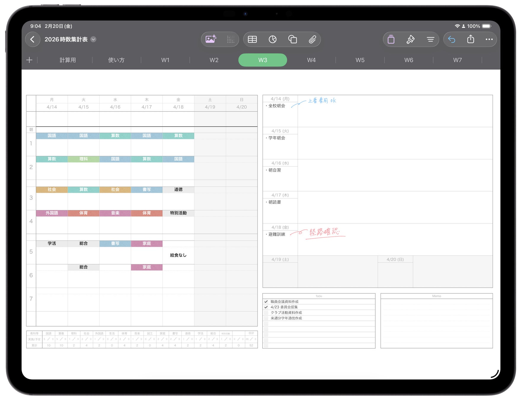 iPadで授業時数を自動集計する『Numbers専用 時数集計表』の2026年度版が販売開始