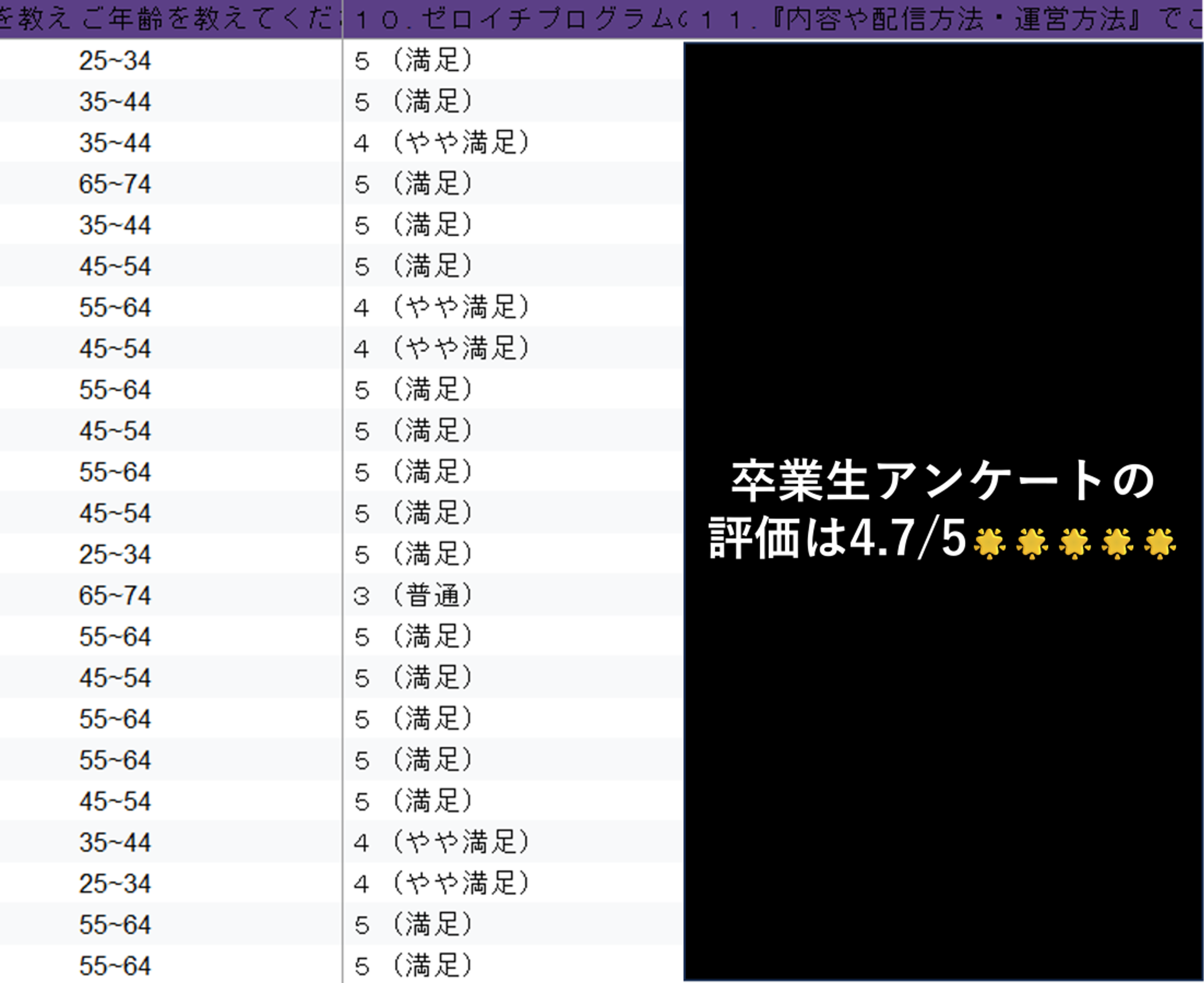 卒業生の方へのアンケートでは、なんと🌟4.7/5のレビューをいただいています。