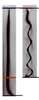 通常、人毛に含まれる硫黄成分の化学反応によりパーマをかけますが、コラーゲンは硫黄成分が乏しいため通常のパーマ液でパーマをかけることはできません。そこで、当社独自技術で植物由来成分などを添加し改質することで、パーマ液でパーマをかけることができるコラーゲン人工毛髪を開発しました。さらに、当該開発品は人毛のような滑らかさと、従来のコラーゲンファイバーの弱点であった水濡れに対しても十分な強度を兼ね備え、ヘアアイロンに対する耐熱性にも優れています。