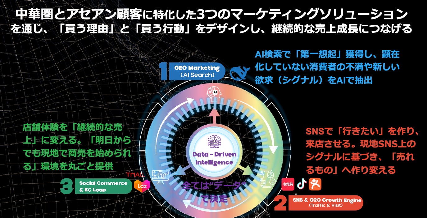 -中華圏・アセアン市場向けの SNS マーケティングと O2O/OMO 施策を通じて、オンラインからオフライン・EC までを一貫してつなぐクロスボーダー型マーケティングソリューションを提供