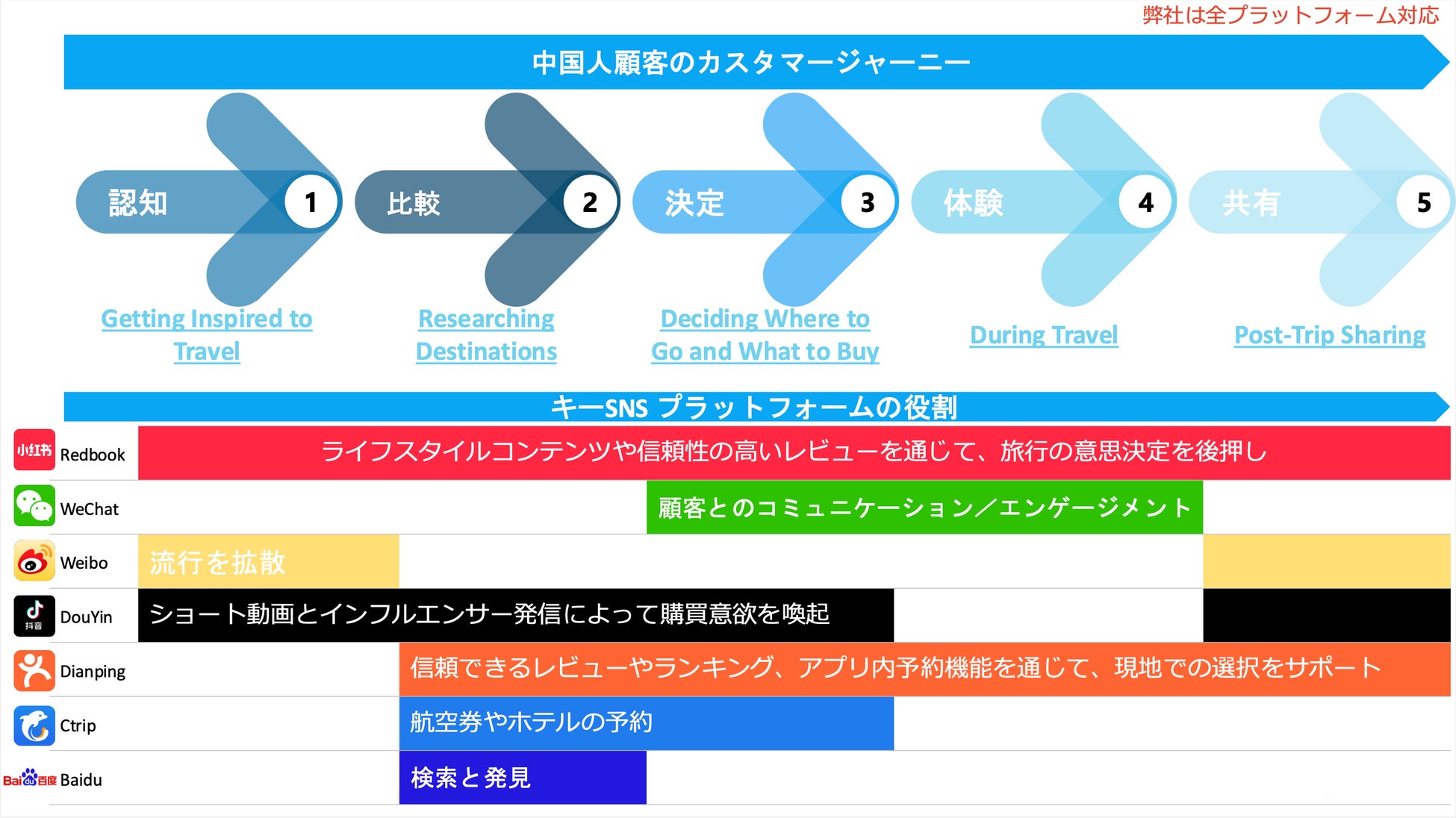 SNS・プラットフォーム: 「Facebook」「Instagram」はMeta Platforms, Inc.の商標です。「微信 / WeChat」はTencent、「小紅書 / Xiaohongshu」はXingye Technology、「微博 / Weibo」はSina Corp、「抖音 / Douyin」はByteDanceの商標です。