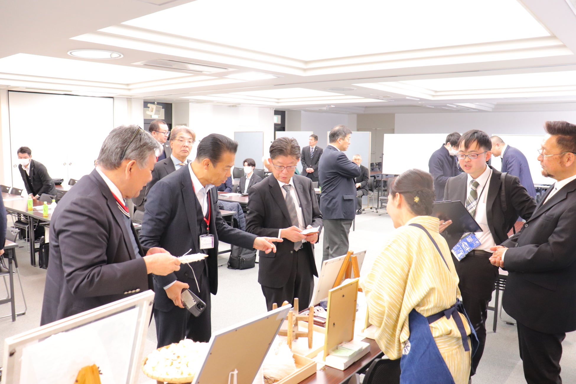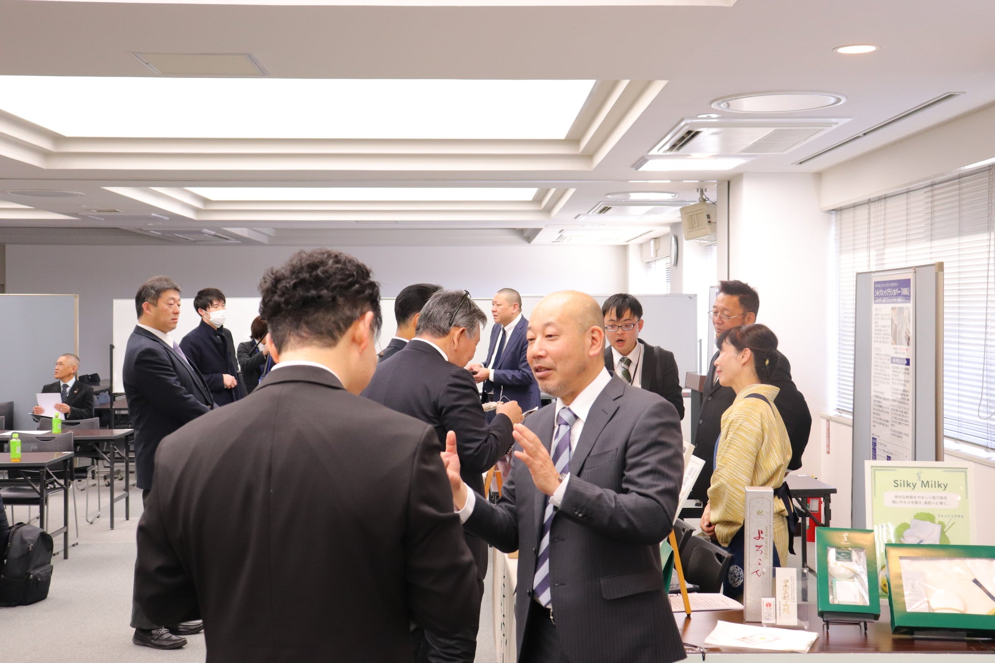 参加企業とマスコミ記者等との懇談・名刺交換を行う