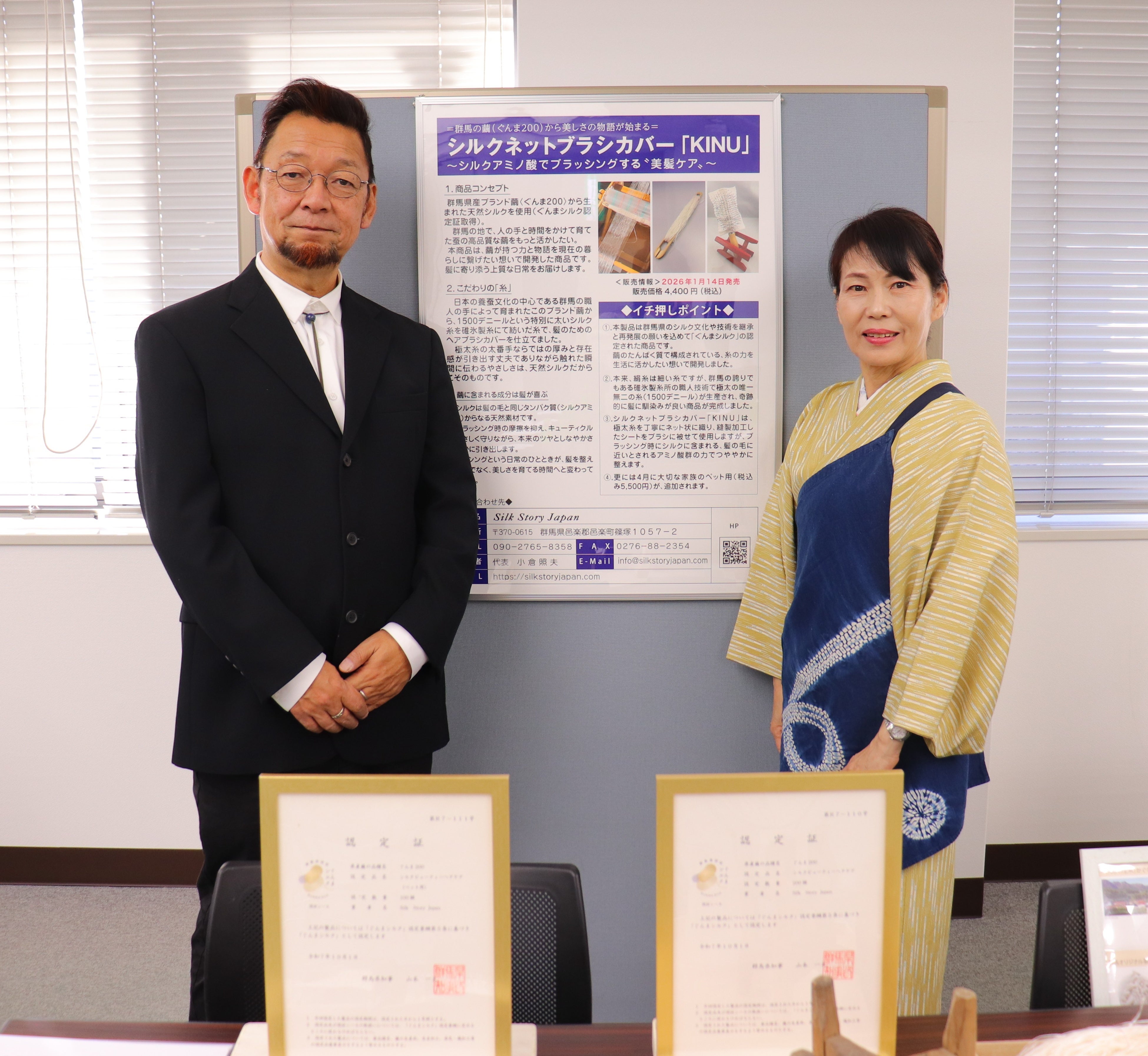 当社は、シルク製品の企画販売を生業とする。新商品として髪を梳かす際に使用する「ブラシカバー」を開発した。群馬県産の1500デニールの太糸を使用した本製品は、髪の毛と同じタンパク質により、摩擦を減らしキューティクルを守るという特徴があり、本来のツヤとしなやかさを引き出す。ペット用も発売を予定している。