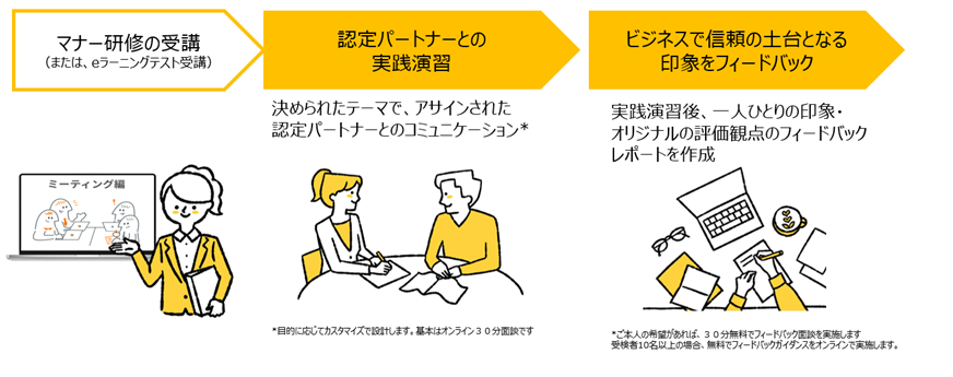 新人が「正しい行動」を覚えるだけでなく、現場で信頼される印象を自ら考え、磨いていくための機会を提供します。