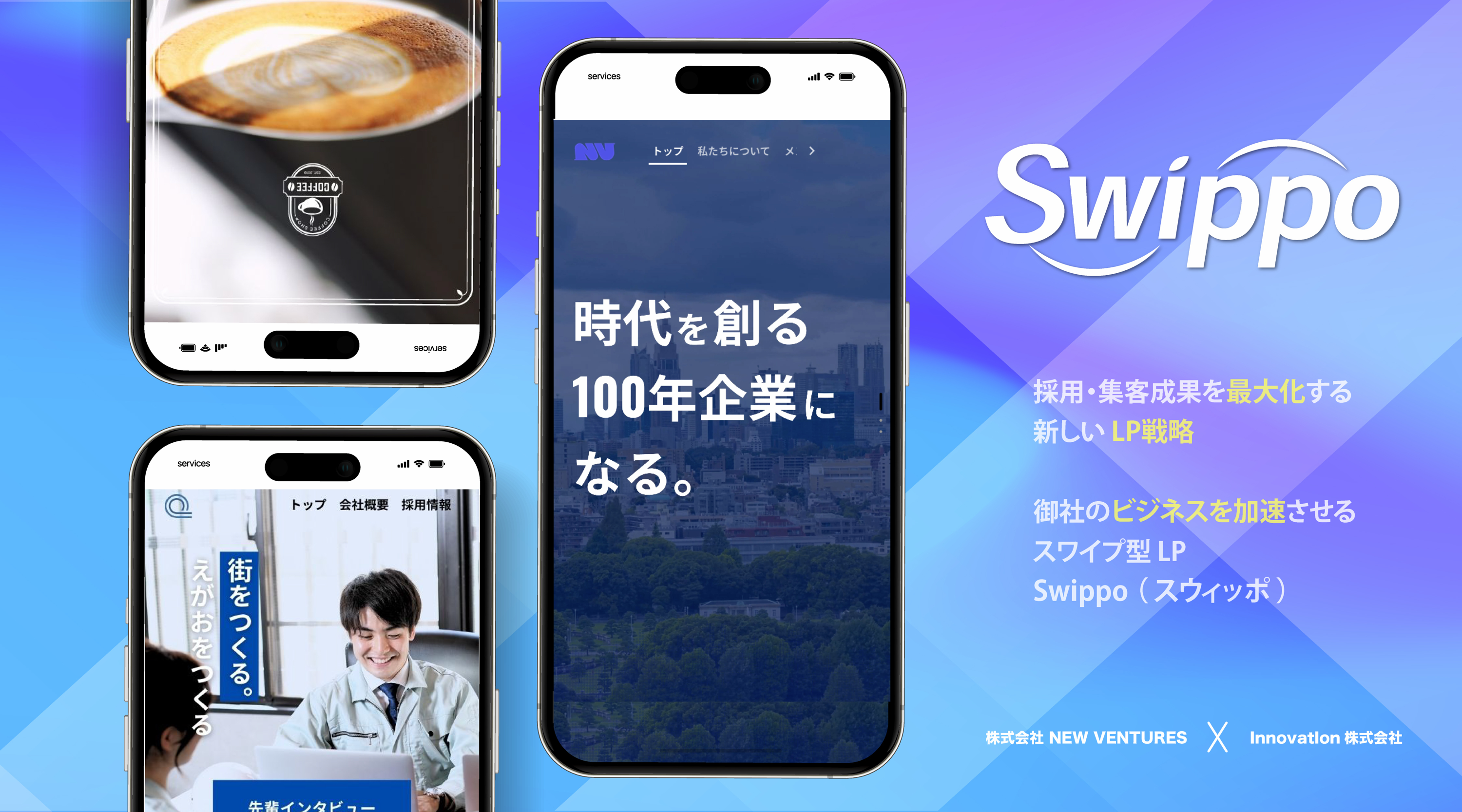 InnovatIon株式会社(本社:広島県広島市、代表取締役:井崎 仰)および株式会社NEW VENTURES(本社:岡山市北区、代表取締役:大岩裕和)は、この度、InnovatIonにおいて、企業の採用課題および小売・サービス業の集客課題を支援する新サービス「Swippo」の提供を開始したことをお知らせいたします。InnovatIonは、NEW VENTURESによる事業承継後、既存事業の強化と新たな事業開発を進めており、本サービスはその取り組みの一環として提供を開始するものです。
