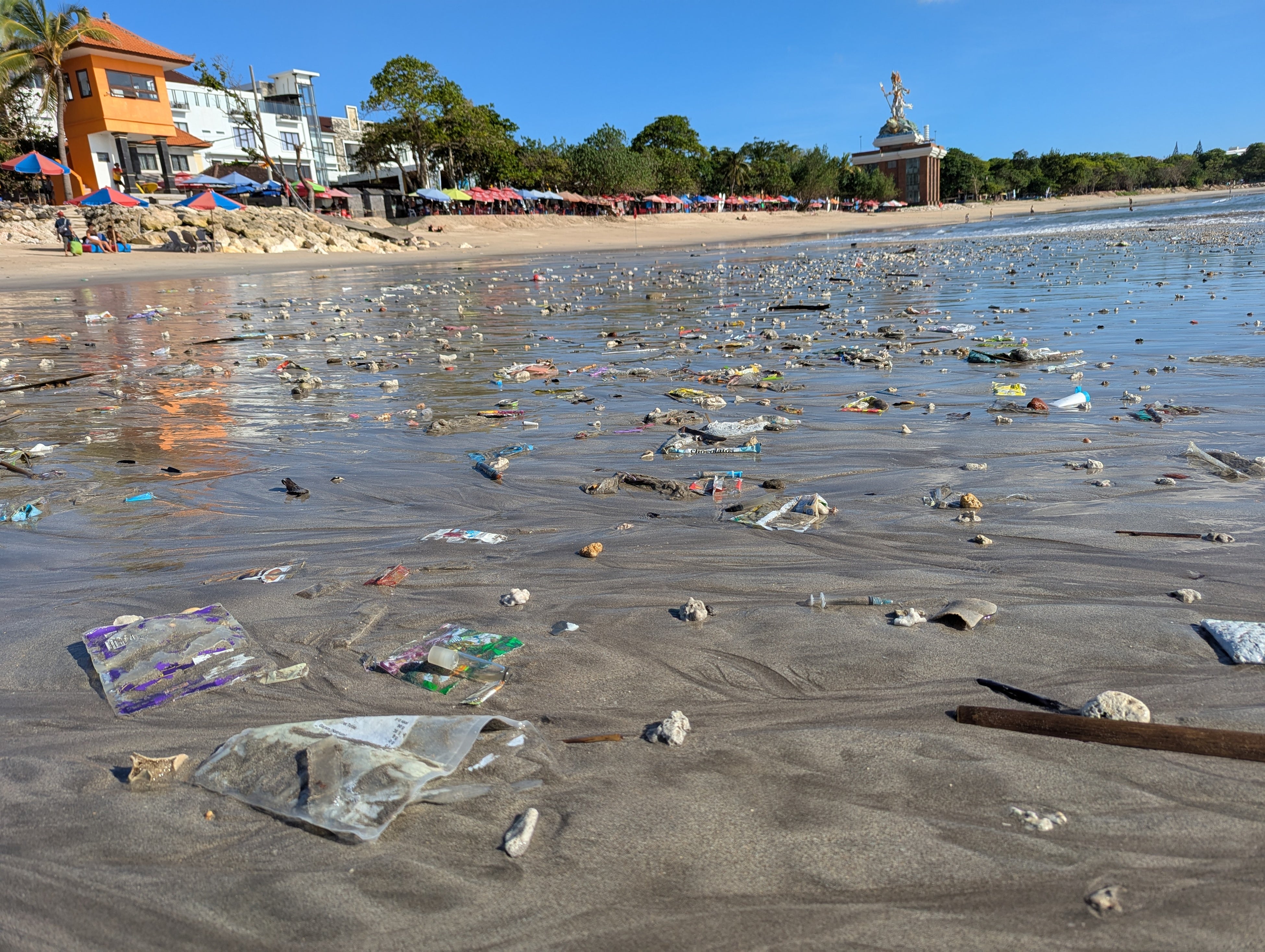 バリ島のビーチ。他の島から流出したものも含め、ポイ捨てされたプラスチックごみは海を漂い、やがてどこかの海岸に漂着する。