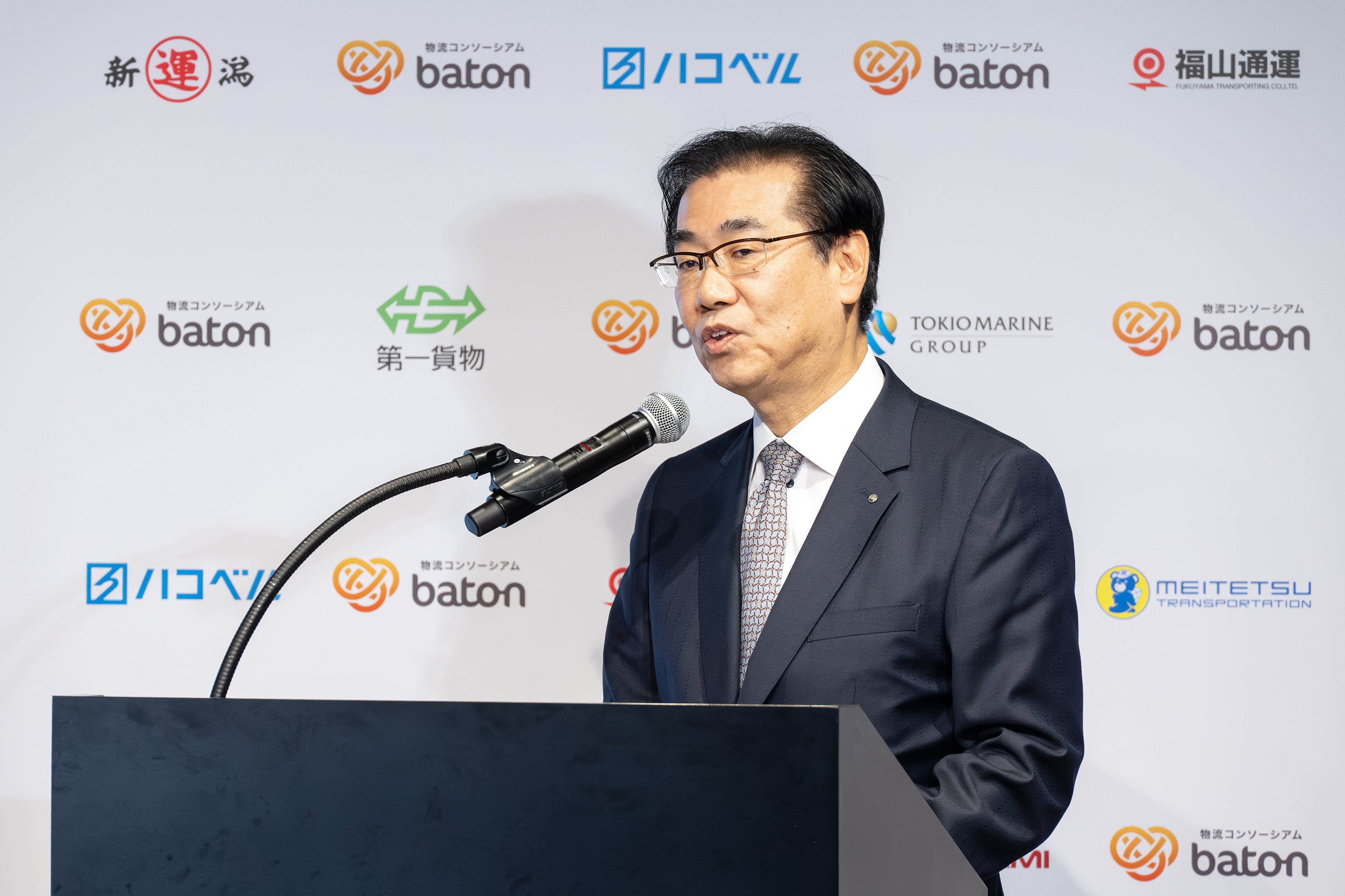 続いて、西濃運輸株式会社 代表取締役社長 髙橋 智氏が、物流業界が抱える課題と、baton の活動意義について語りました。