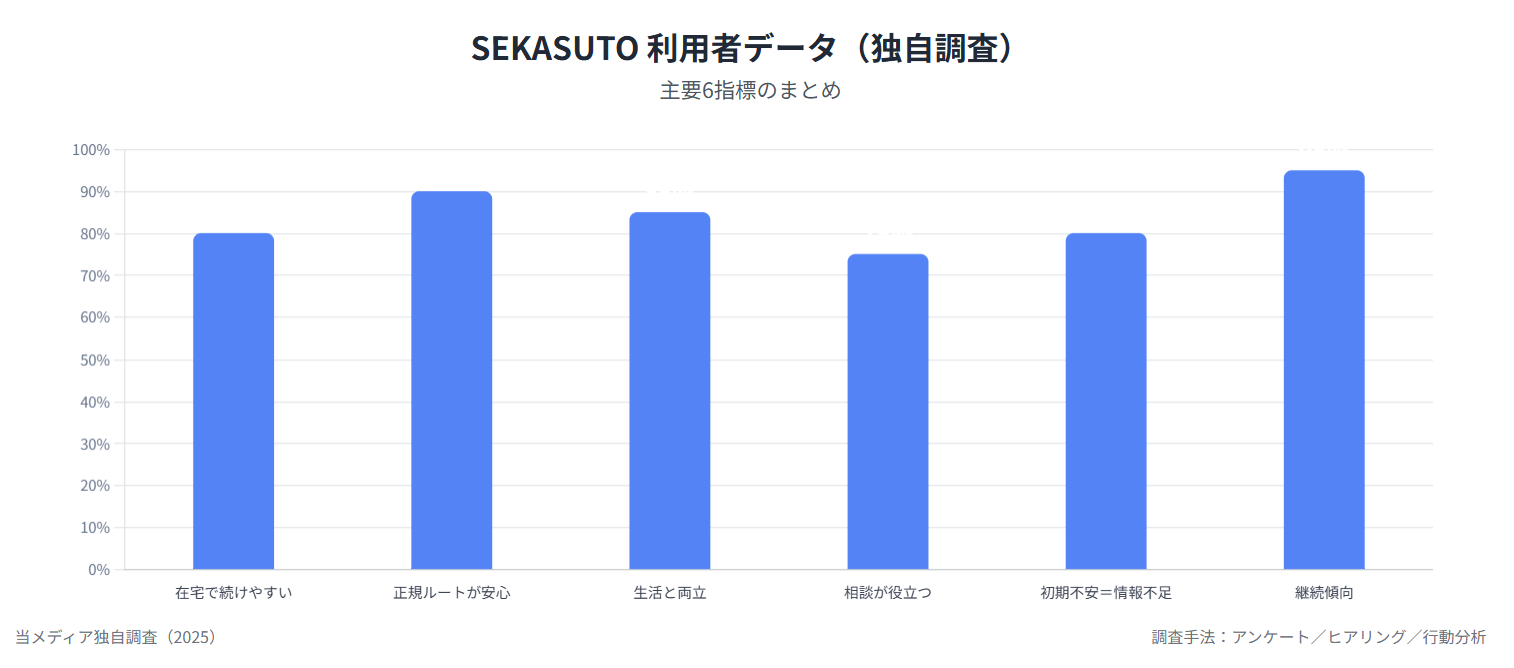 データ全体を通じて、SEKASUTOは継続しやすさと安心材料が豊富なサービスであるという傾向が明確になった。