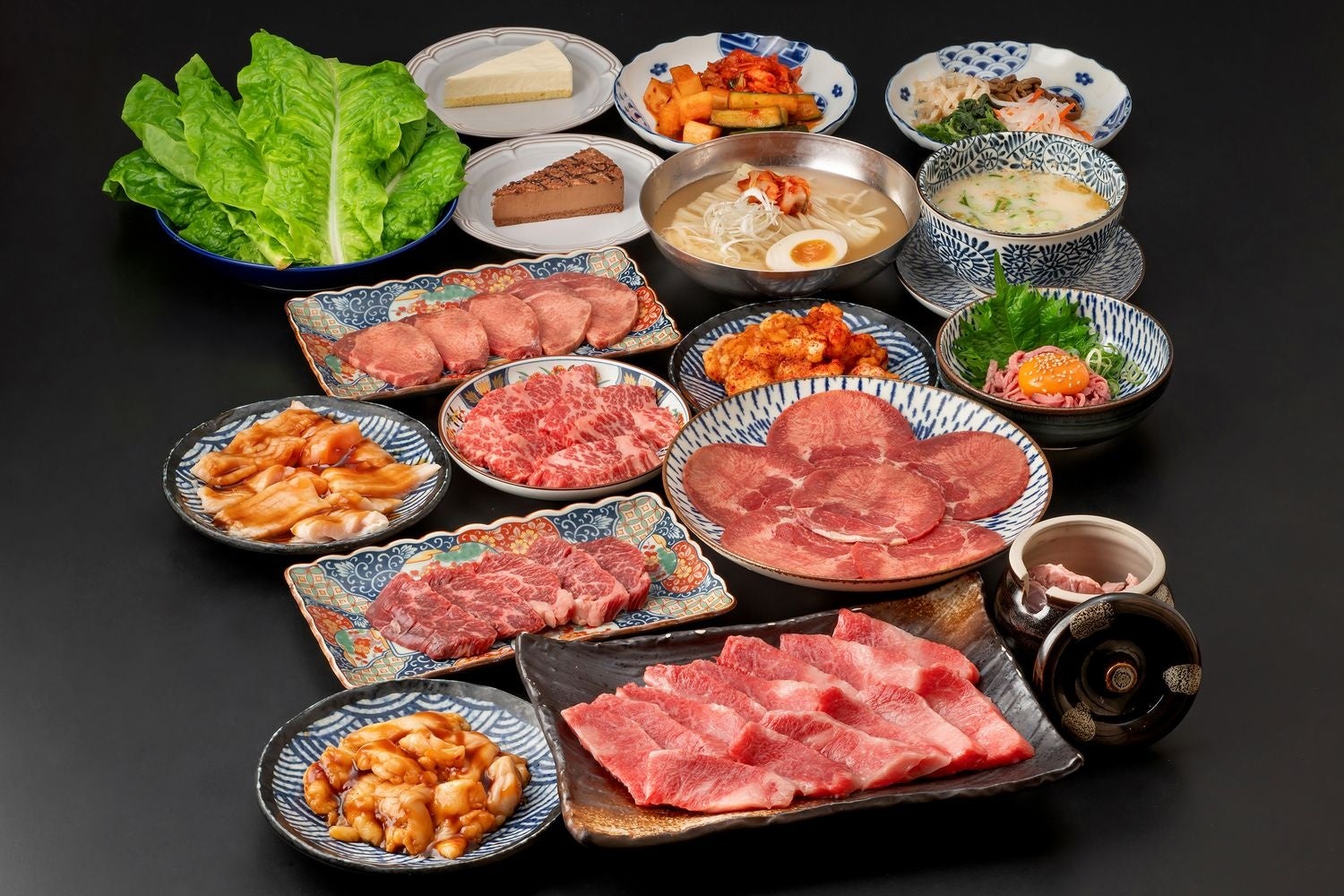 焼肉どんどん亭では、長年の経験を持つ仕入れ担当が厳選した新鮮な肉を秘伝のタレとともにご提供。カルビ、ロース、ハラミ、タンといった定番部位はもちろん、希少部位まで幅広く取り揃えております。また、サイドメニューも充実。特注のオリジナル麺を使用した風味豊かな冷麺、目の前で仕上げるチーズたっぷりのシーザーサラダ、そして季節のフルーツまで、焼肉をより一層楽しんでいただけるラインナップです。