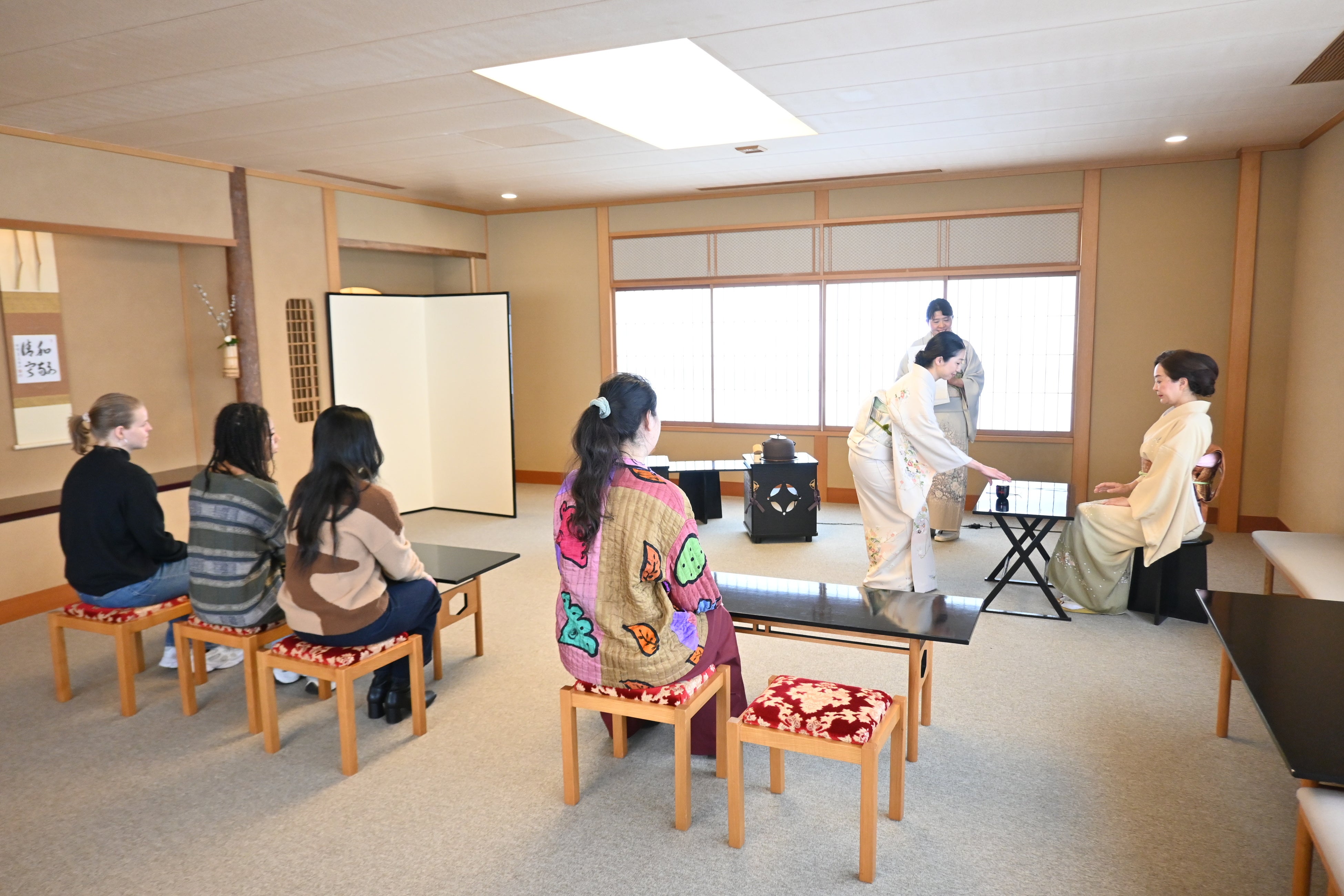 Students also participated in a tea ceremony experience led by Machiko Hoshina, a tea master of the Urasenke tradition, as part of their exploration of Japanese culture.