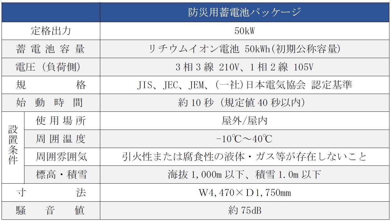 本製品は、本年7月30日の消防法改正により常用・非常用兼用のリチウムイオン蓄電池が非常用電源として設置可能となったことを受け、当社が国内初の消防認定を取得(※1)する製品です。非常時だけでなく平常時の再エネ活用拡大等でも有益で、「低騒音(※2)」「振動・排気ガス無し」「電気料金・メンテナンス費用削減」など、蓄電池ならではの価値を多く備え、非常用電源市場の新しい選択肢となります。