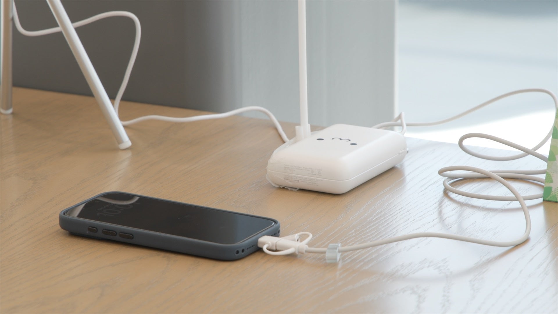 ▲軽さを生かし、ガラス面へ設置。 ▲発電した電力はスマホ充電など、来店したお客さまが実際に使用可能。