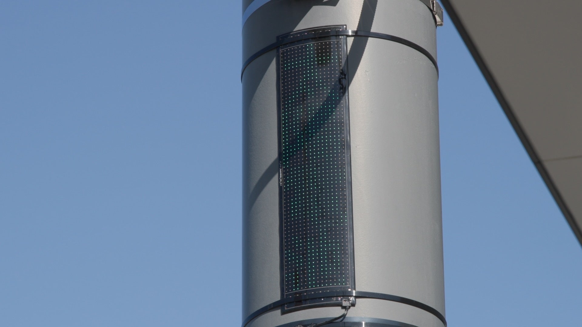▲「曲げられる」特長を生かし、県内で初めて丸みのあるキャノピー柱へも設置。