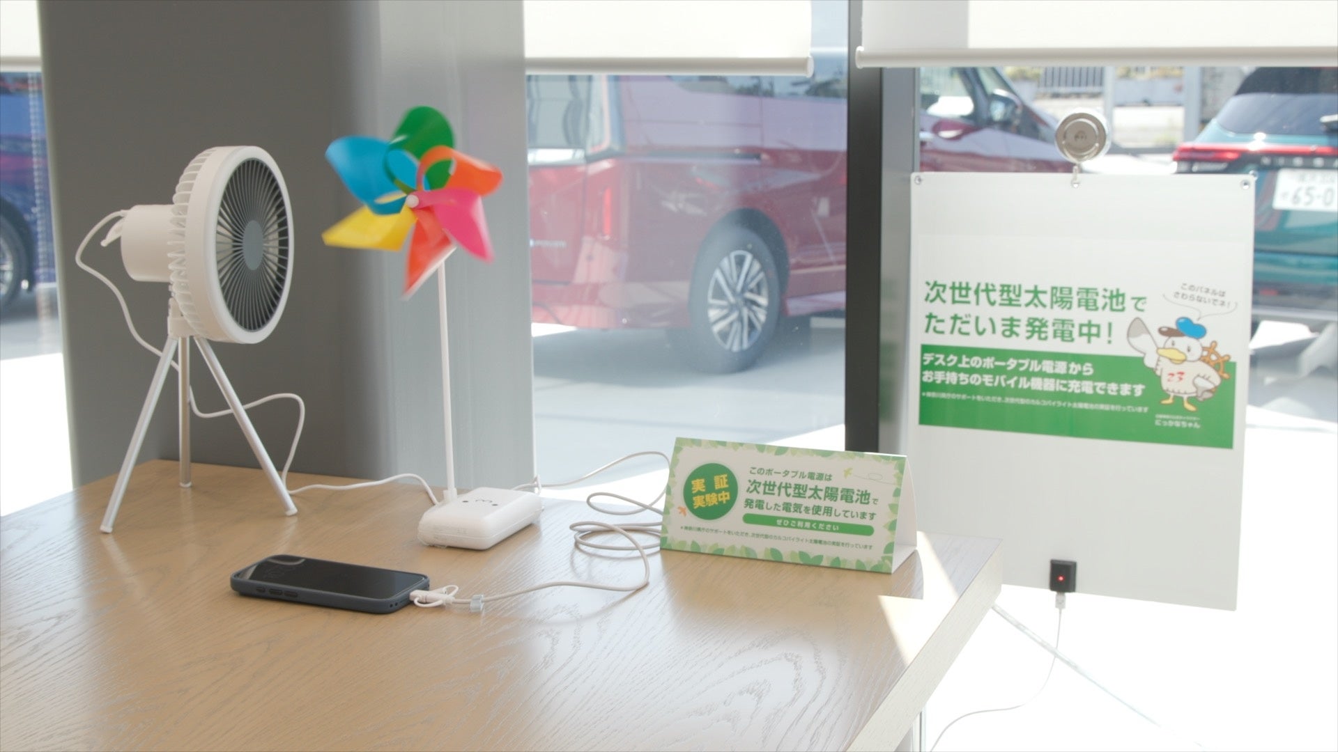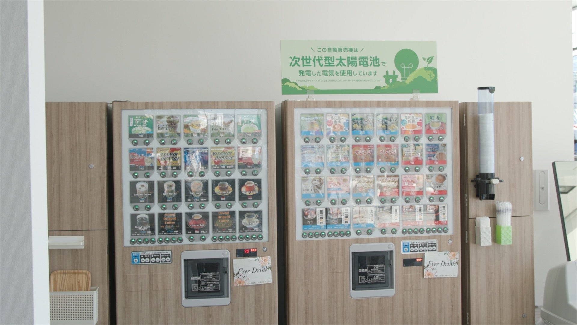 発電した電力は自動販売機やスマートフォン充電等に活用していますので、ぜひ来店されたお客さまには実際に電力を使っていただき、次世代型太陽電池について知っていただければと思います。