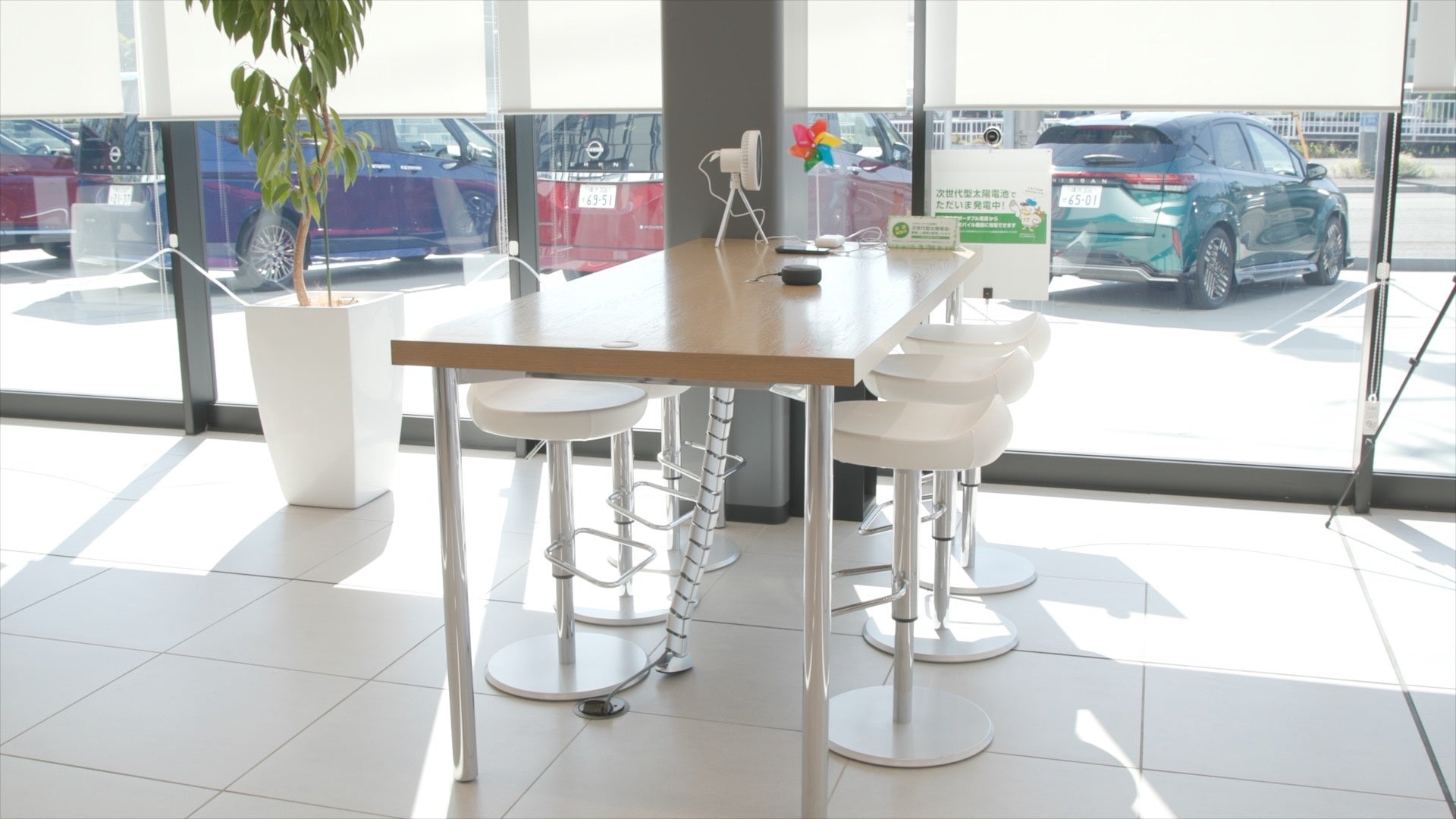 日産神奈川販売 R1東戸塚店では、「カルコパイライト太陽電池」を店舗インフラへ初めて導入し、実際の生活空間でどのように活用できるかを検証。神奈川発の技術を、地域の店舗を通じて実生活へ実装する事例として取り組みを進めています。