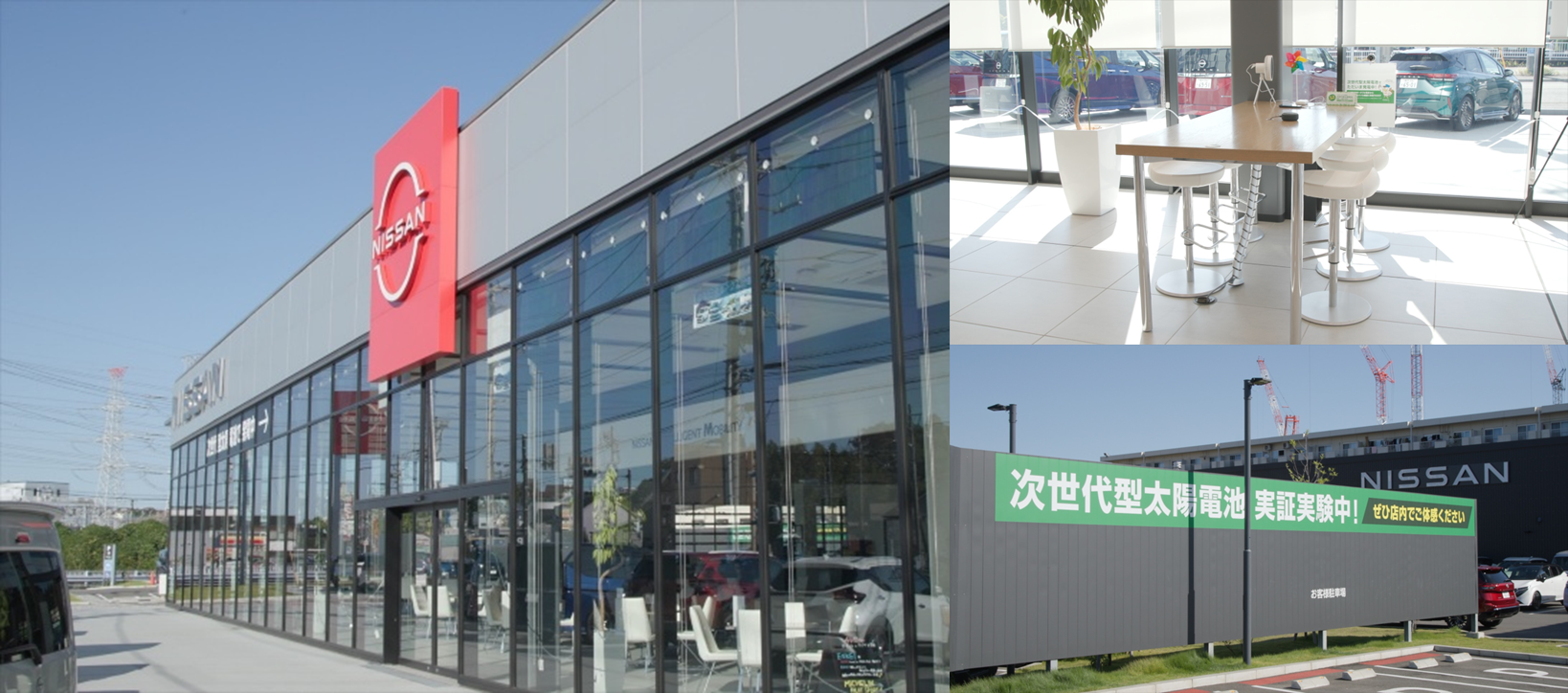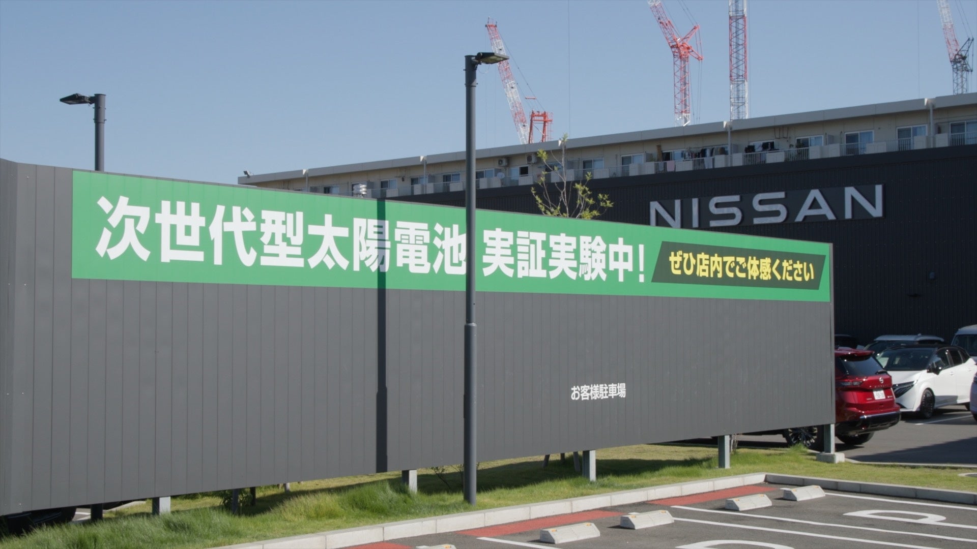日産は2050年までに、事業活動からクルマのライフサイクルまで含めたカーボンニュートラルの実現を掲げています。日産販売店においても再生可能エネルギーの活用を促進し、クリーンな電力の使用を推進していきます。今回の実証実験を通じて、太陽電池の設置場所や、活用範囲を確認し、将来的に環境配慮型店舗の導入に繋げ、お客さまに次世代型太陽電池の先進性と日産の環境への取組みを伝えていきます。