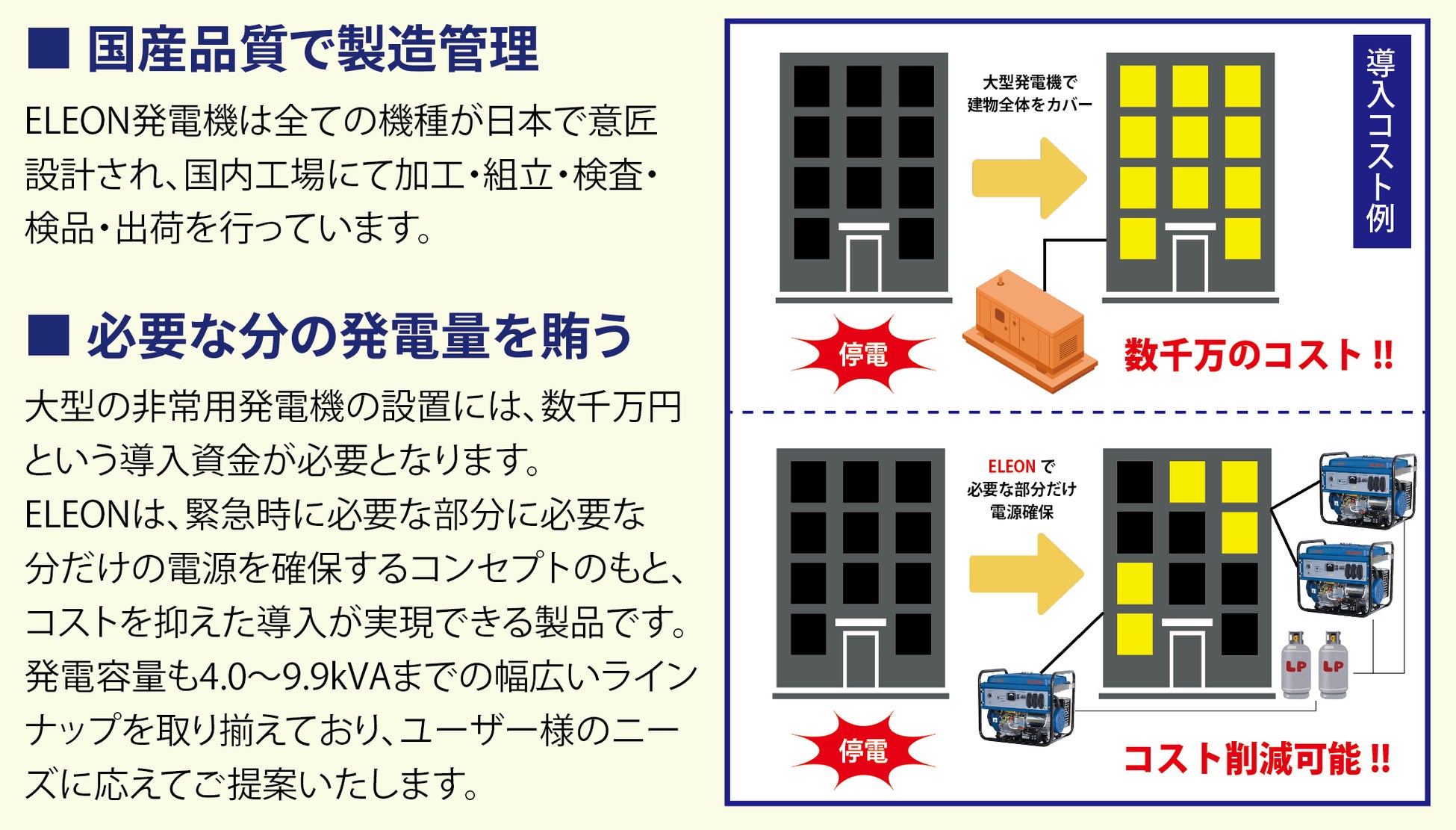 事業内容:非常用発電機ELEONシリーズの開発・製造・販売
