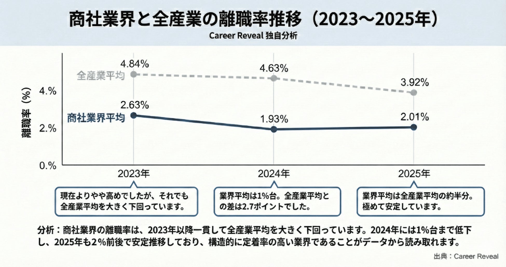 【2025年版】総合商社8社の離職率ランキングを公開 ― 業界平均2.01%、「1%未満」の定着企業も ―