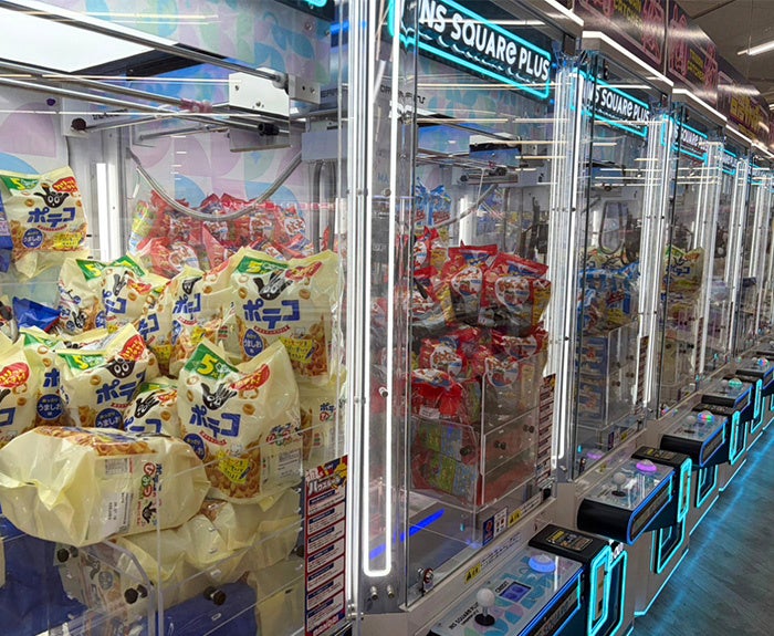(日用品・食品が景品の台、難易度に応じた台、お子さま用10円キャッチャーなど)