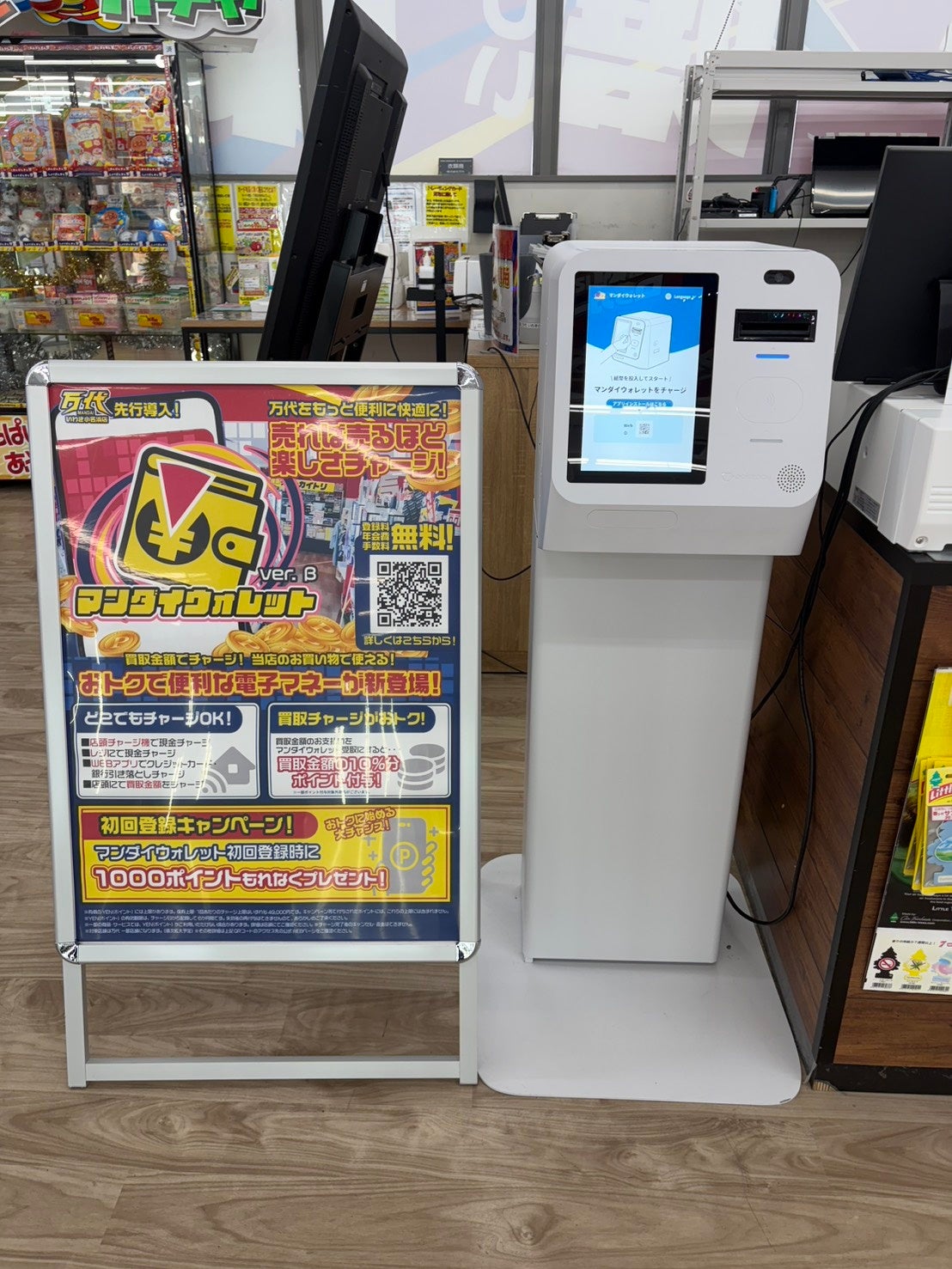 本取り組みの特徴は、単なるキャッシュレス化ではなく、家計を悩ませている物価高の時代に “楽しさ”と“お得さ”を無理なく両立できる新しい店内消費体験を提案している点にあります。今なら、不用品を買い取ってもらい、その金額を「マンダイウォレット」にチャージすることで、チャージ額に10%分のポイントが付与されます。(※現金・クレジットカードなどからの通常チャージも可能)
