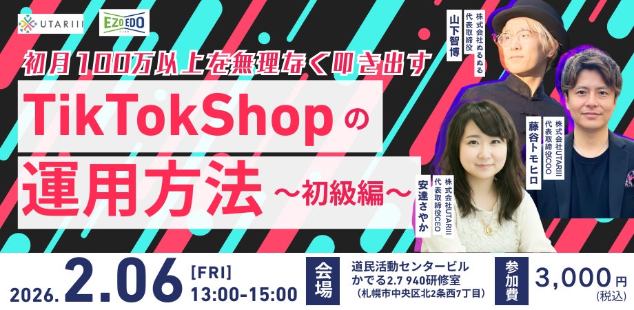 現在、世界中で急成長しているTikTokShopは、2026年の日本市場においても最重要の販売チャネルです。本イベントでは、データに基づいた「売れるロジック」を北海道の経営者に直接届けることで、地域経済のDX(デジタルトランスフォーメーション)と、東京・世界へ向けた販路拡大を支援します。