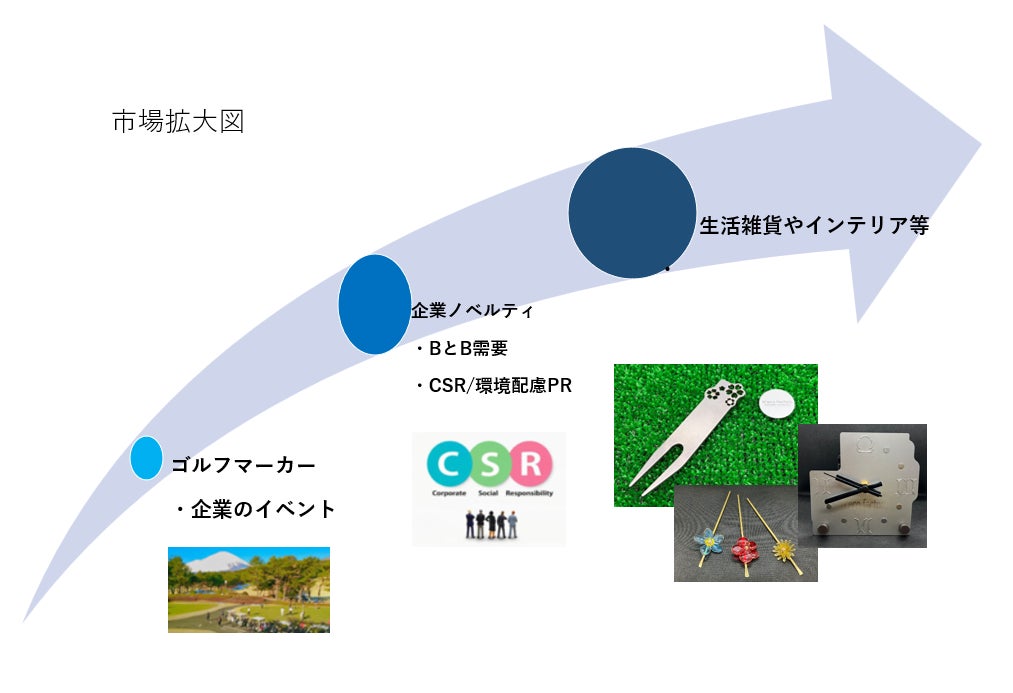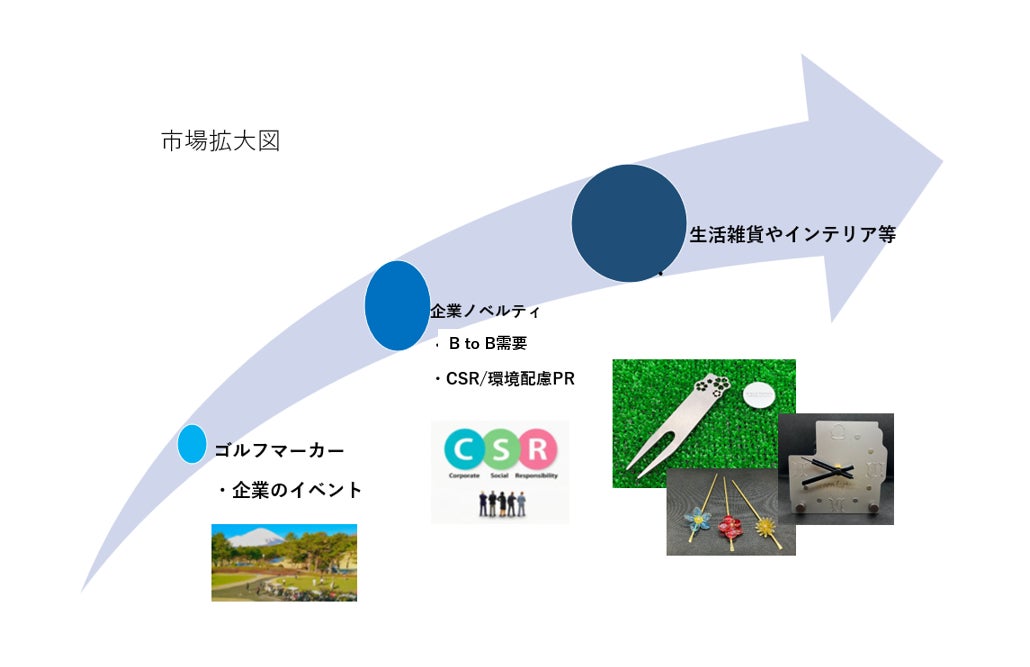 今後は、マーカーに留まらず、他のゴルフ用品や生活雑貨などにも挑戦し、さらには、販路をゴルフ業界以外の記念品・イベント市場にも拡大していきたいと考えています。