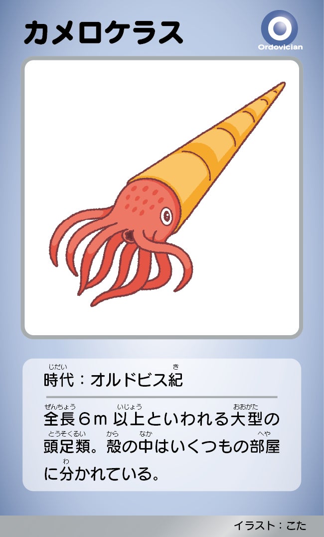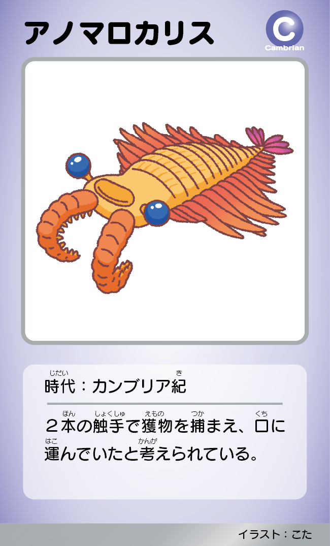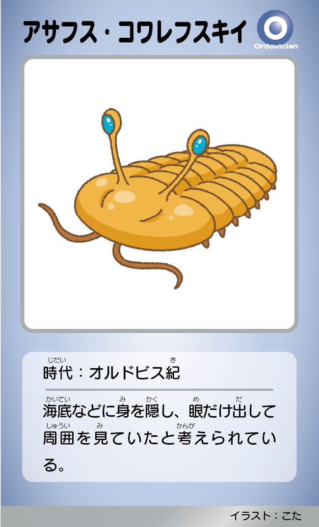 古生代探検報告書(ワークシート)を完成させると絵本作家こたさんのイラストを使用した「古生代の生きものカードをプレゼント!(1日1人1枚:8種類)